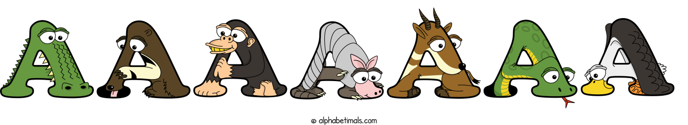 Aaaaaaa animal word art spelling Aaaaaaa with Alphabetimals - cartoon alphabet animals