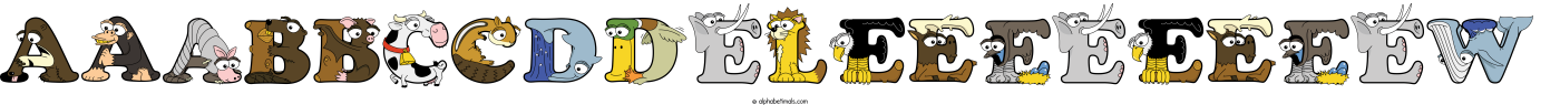 This word art spells Aaabbccddeleeeeeeeew using cute cartoon animal alphabet letters.