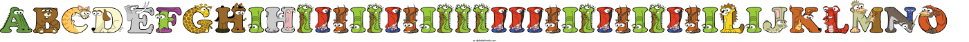 This word art spells Abcdefghihiiiiiiiiiiiiiiiiiiiiiiiilijklmno using cute cartoon animal alphabet letters.