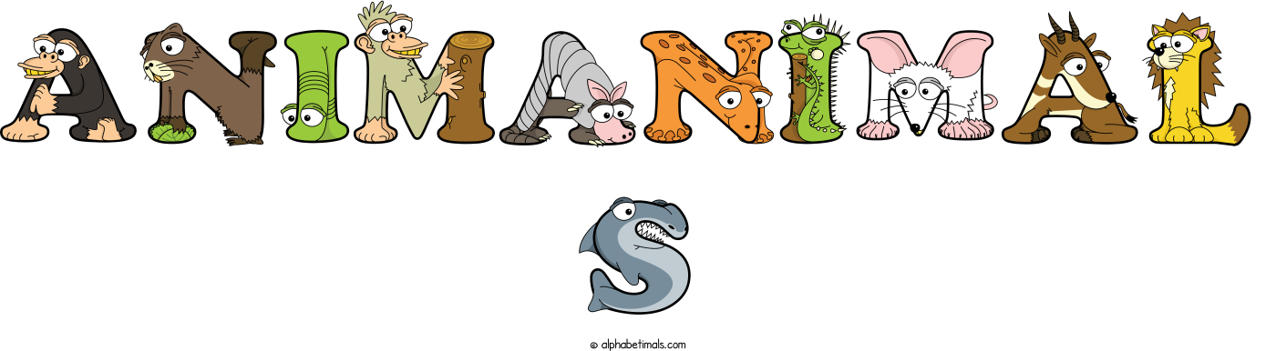 Animanimal S animal word art spelling Animanimal S with Alphabetimals - cartoon alphabet animals