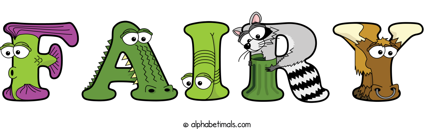 Fairy animal word art spelling Fairy with Alphabetimals - cartoon alphabet animals