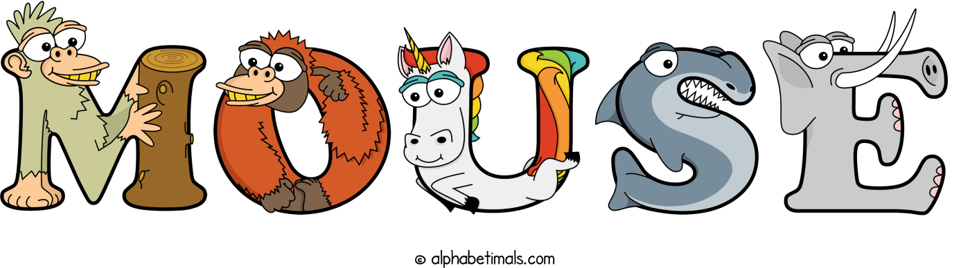 This word art spells Mouse using cute cartoon animal alphabet letters.