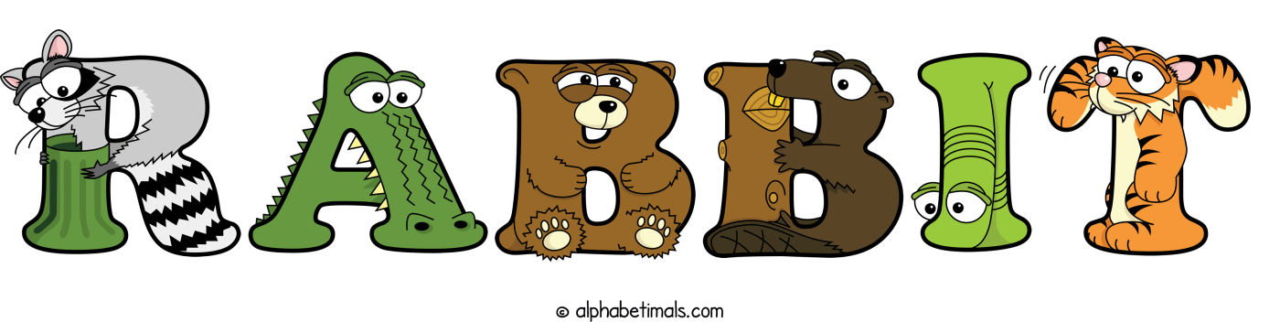 Rabbit animal word art spelling Rabbit with Alphabetimals - cartoon alphabet animals