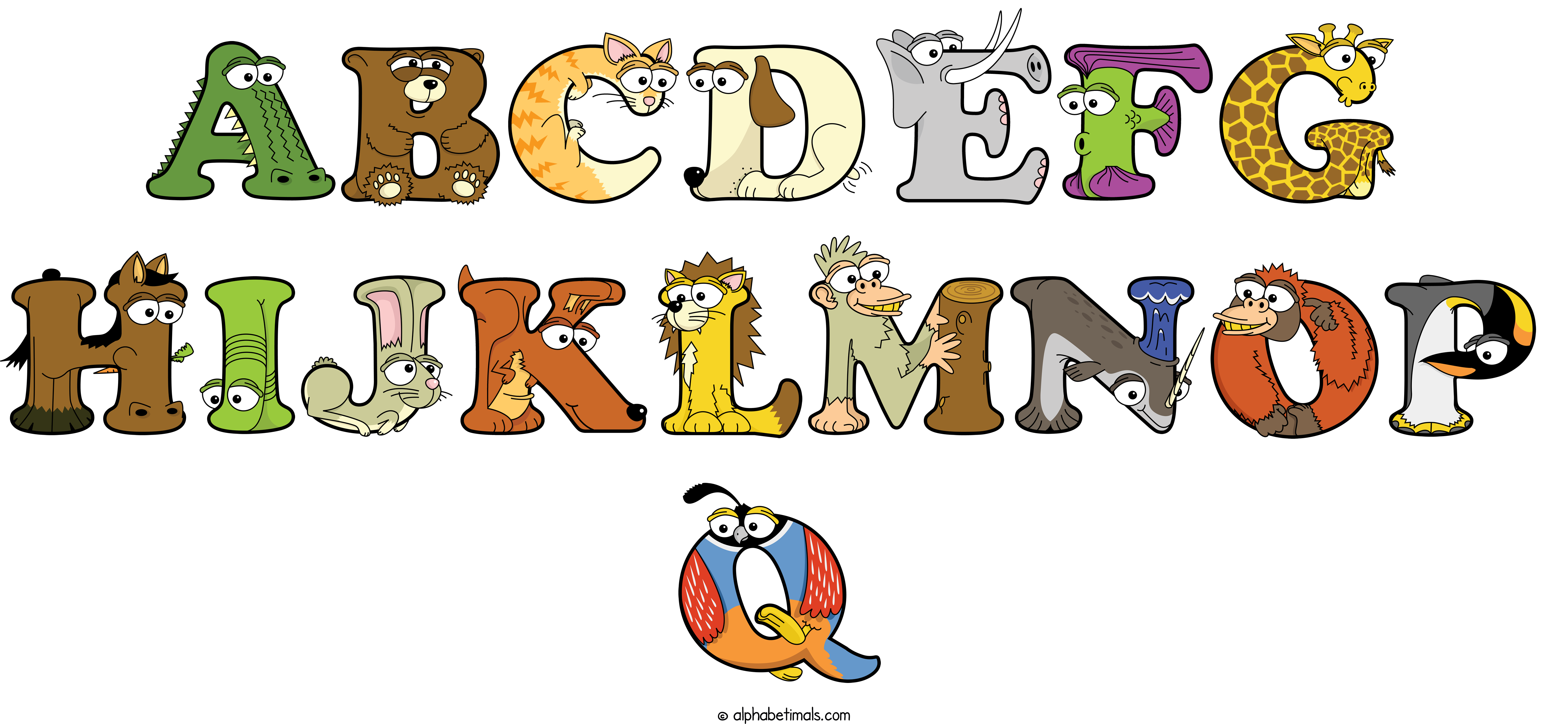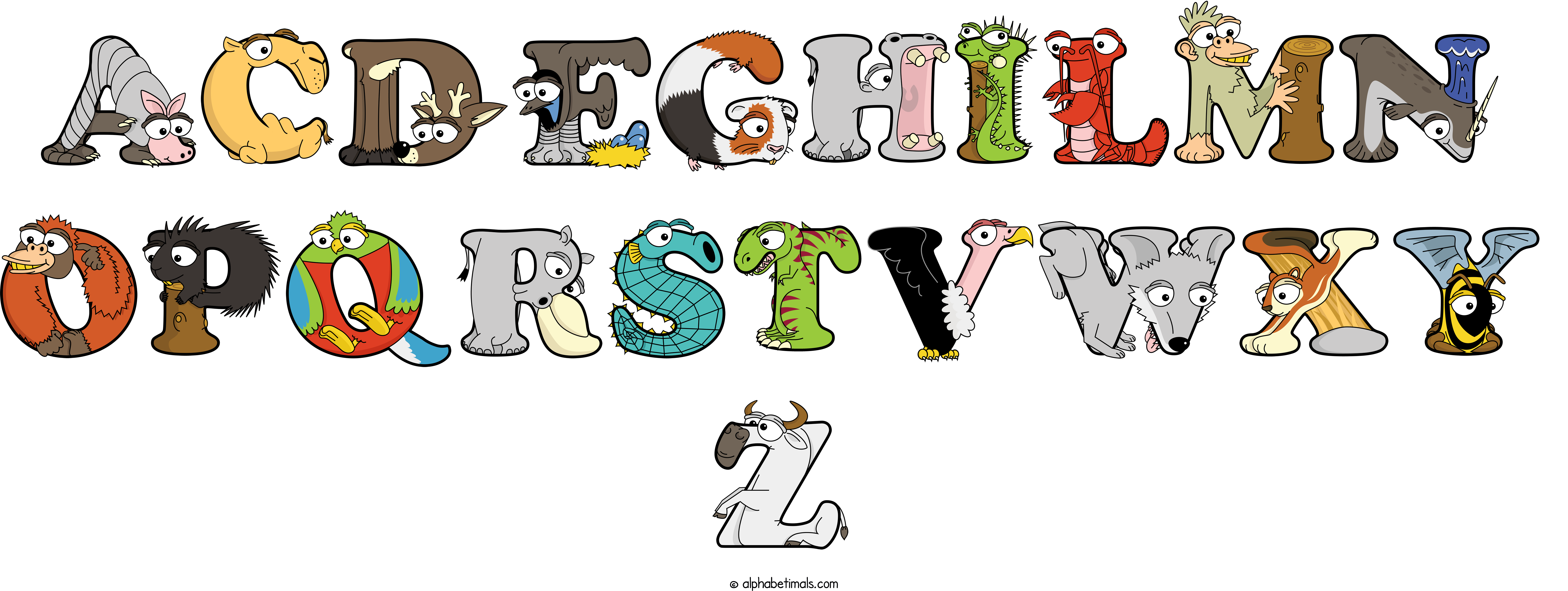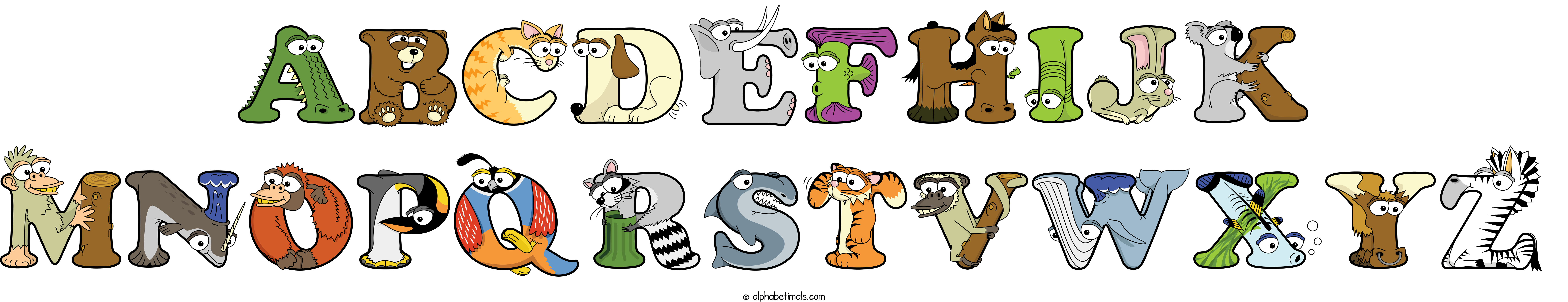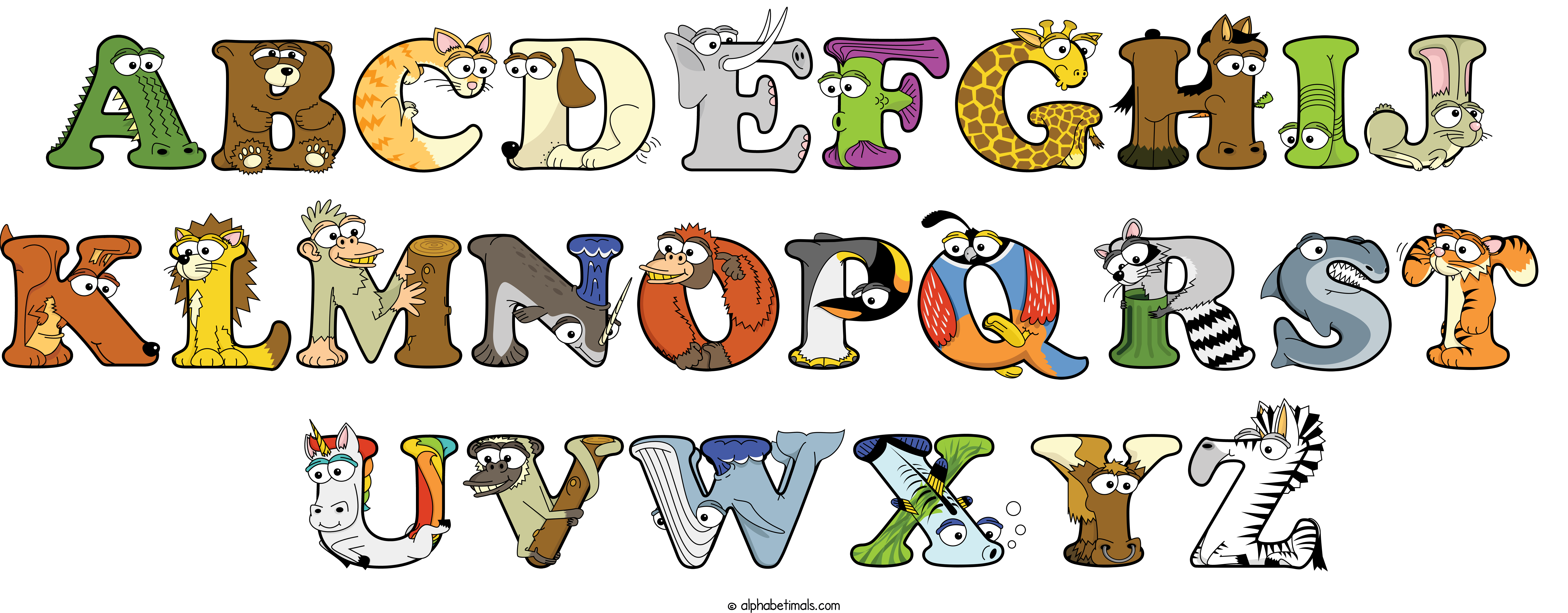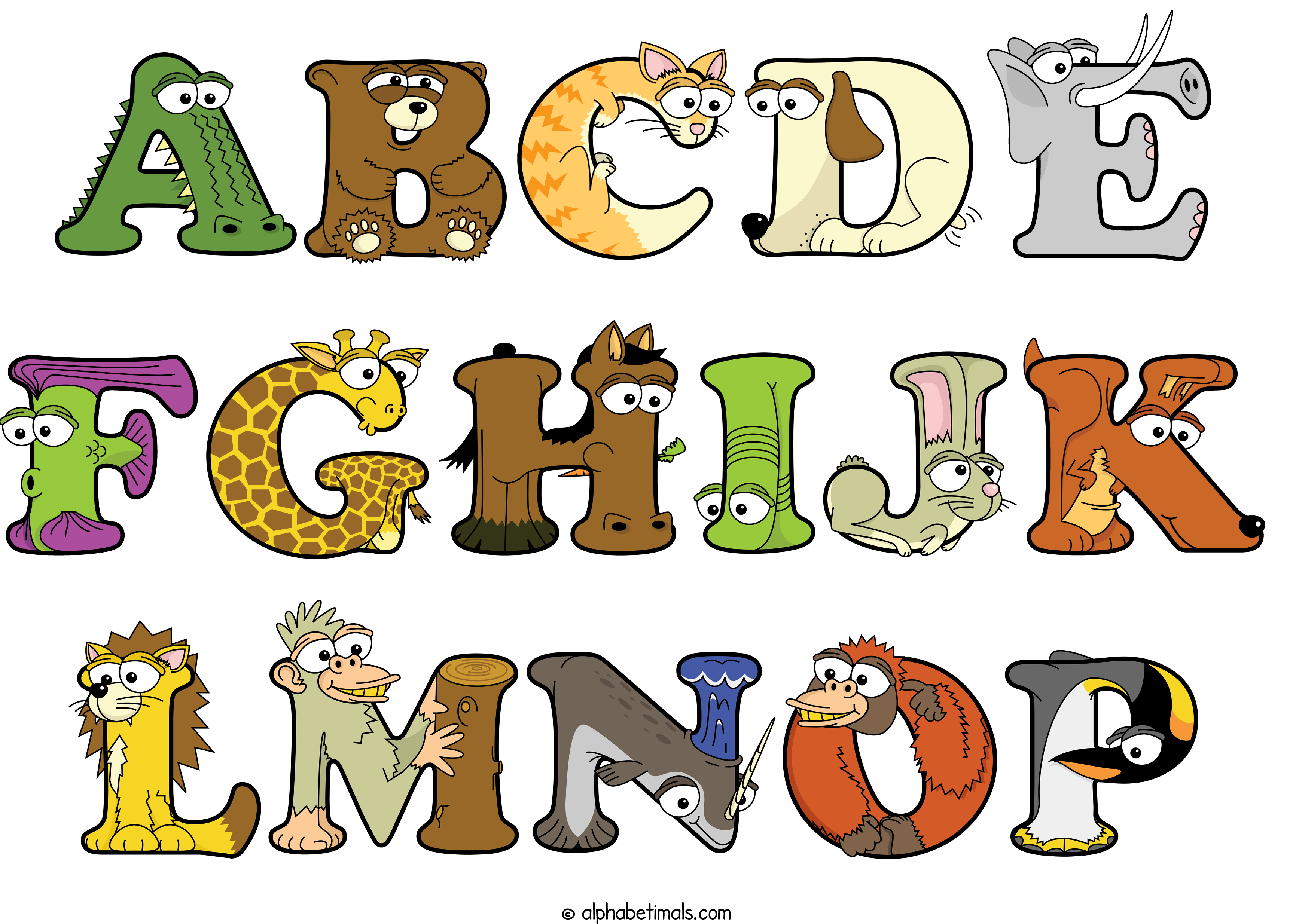 Kids have more fun and learn the ABC’s easier with Alphabetimals, cute cartoon animals shaped like the letters of the alphabet.