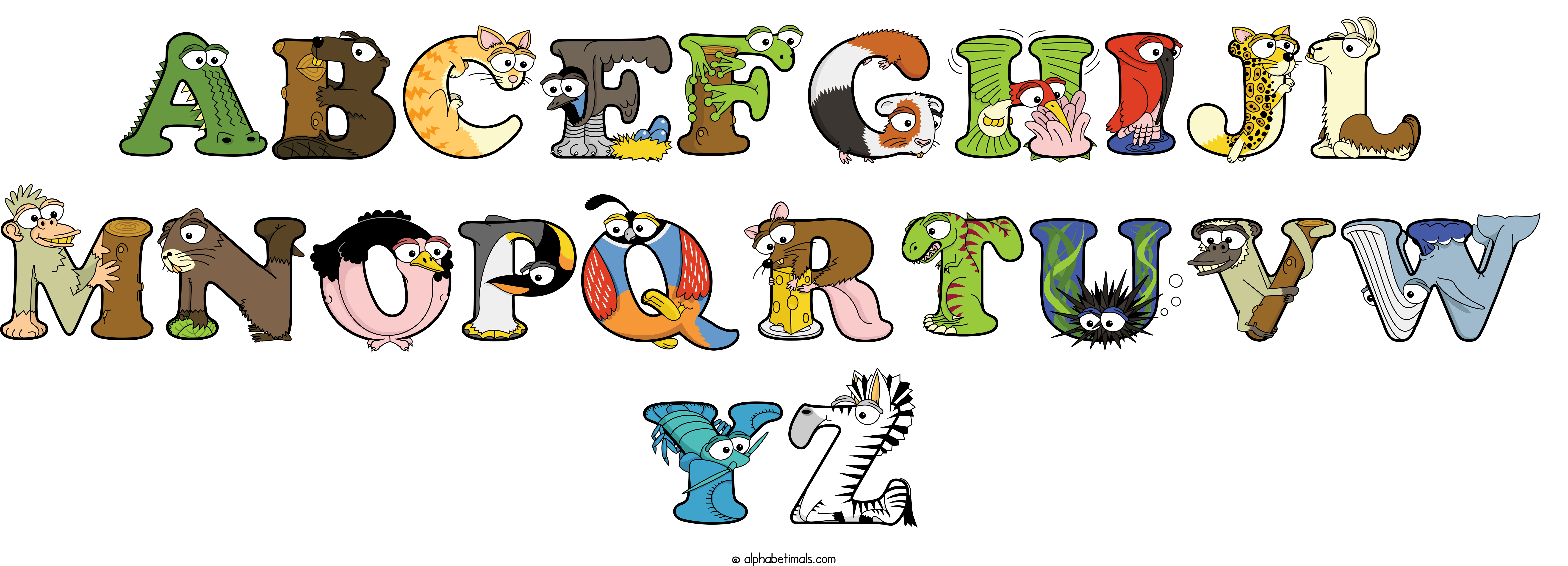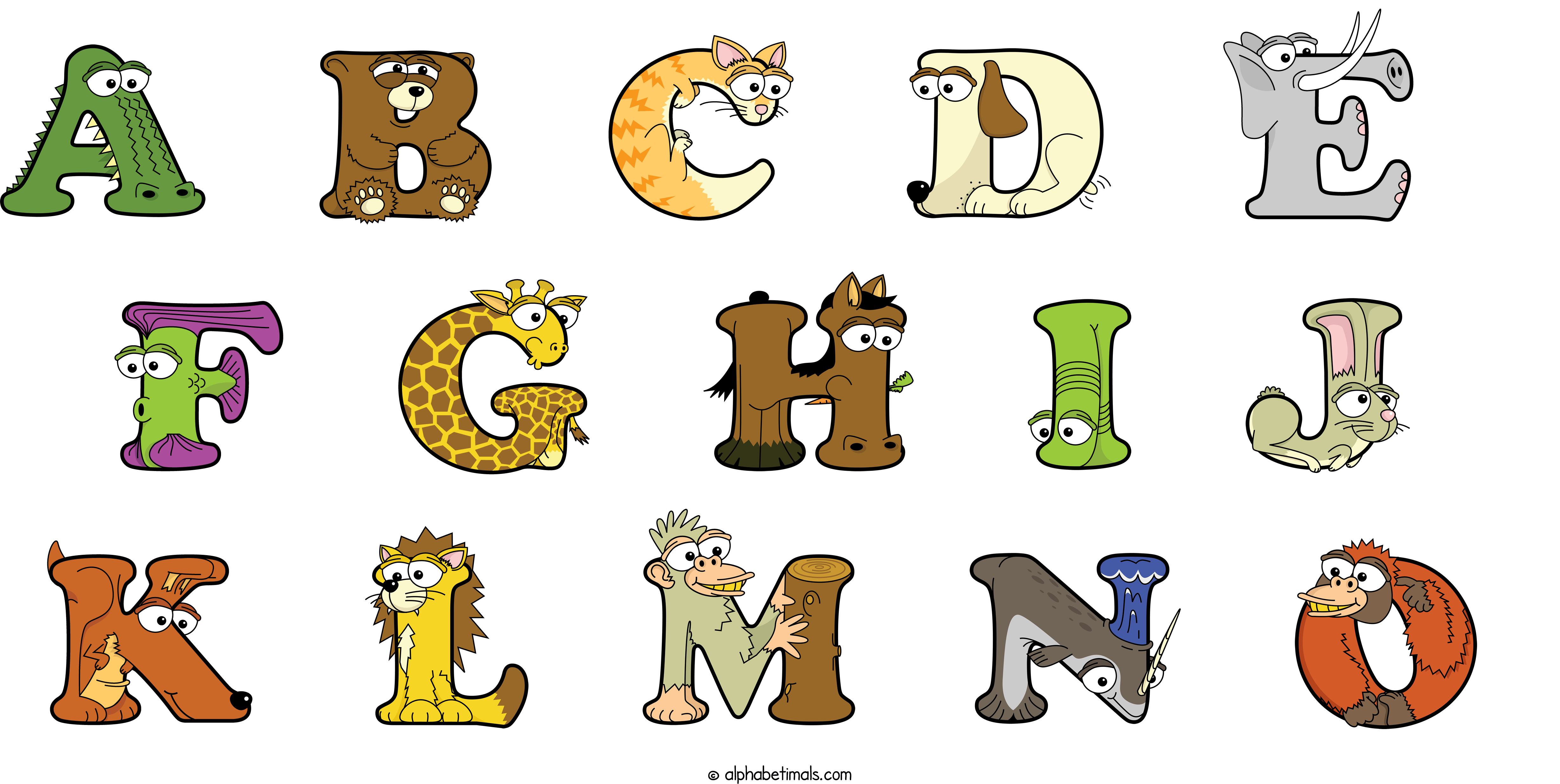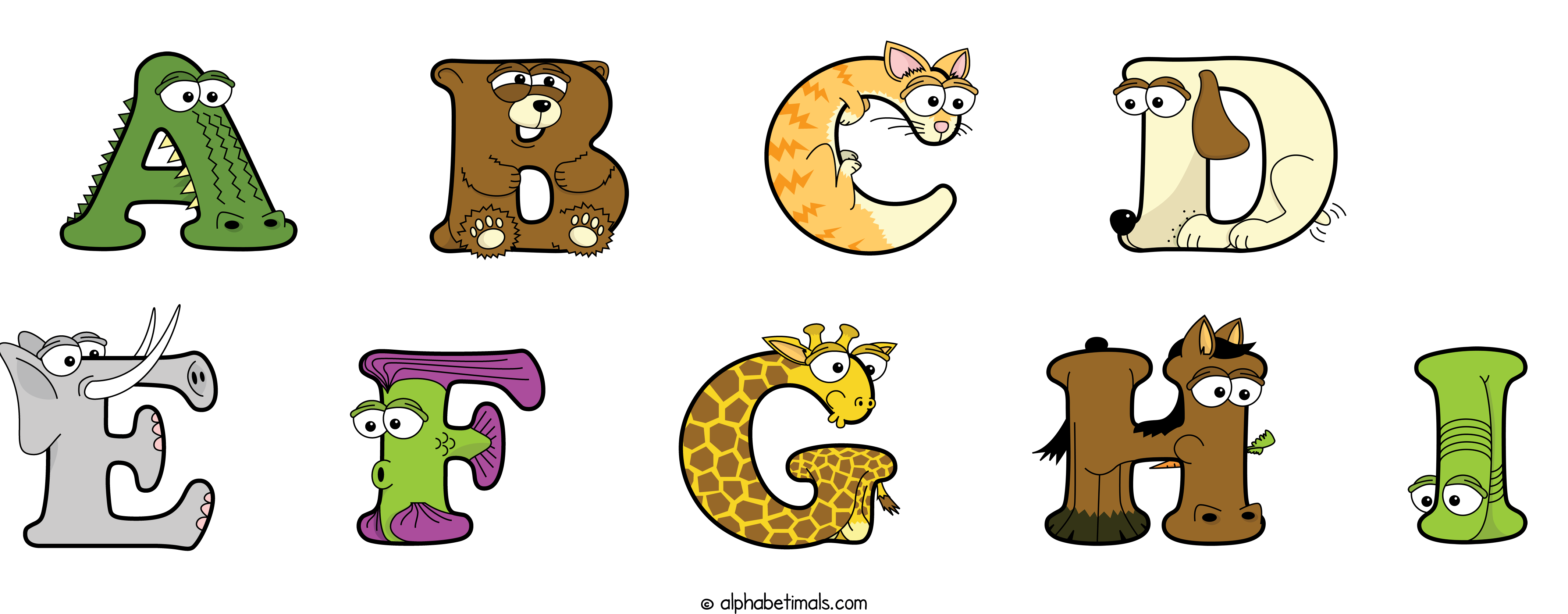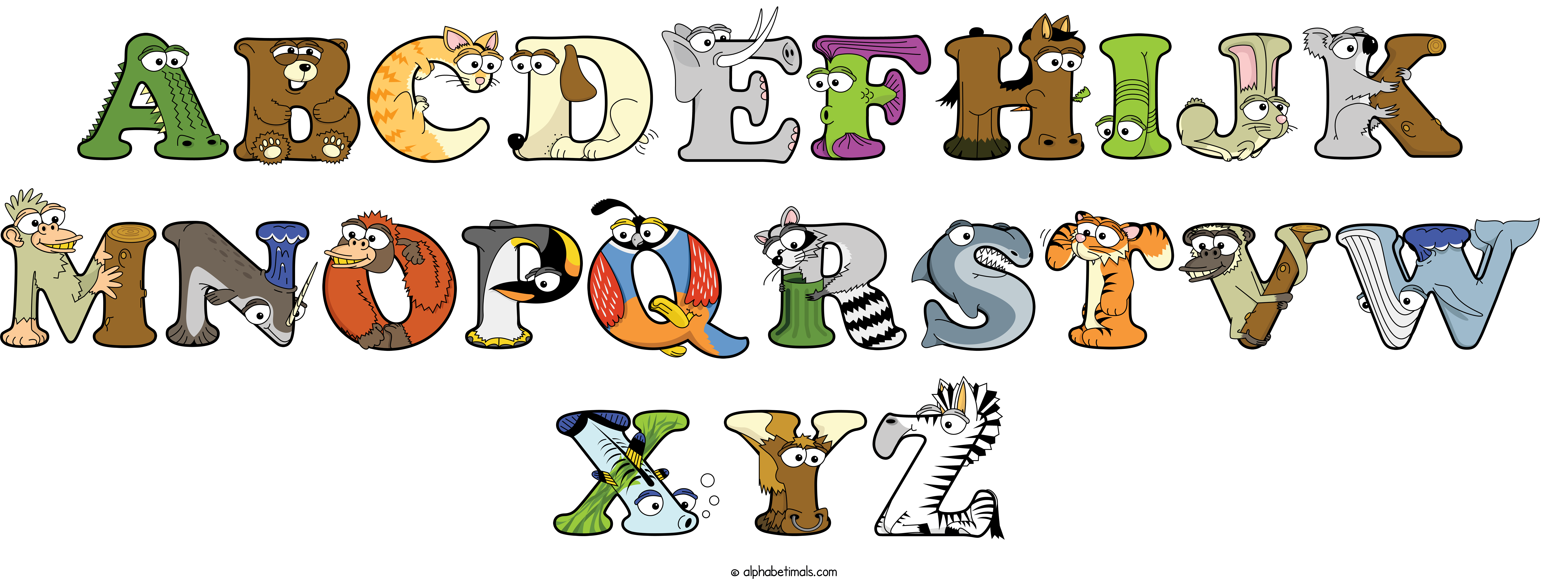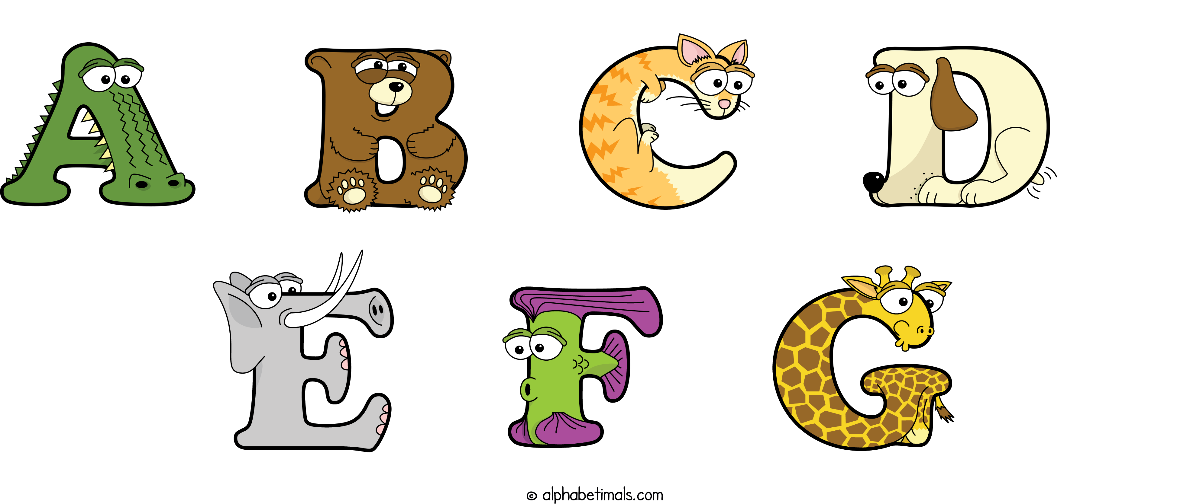 Kids have more fun and learn the ABC’s easier with Alphabetimals, cute cartoon animals shaped like the letters of the alphabet.