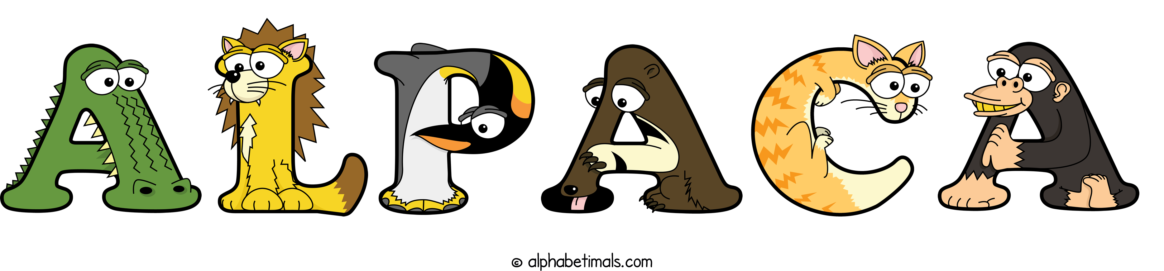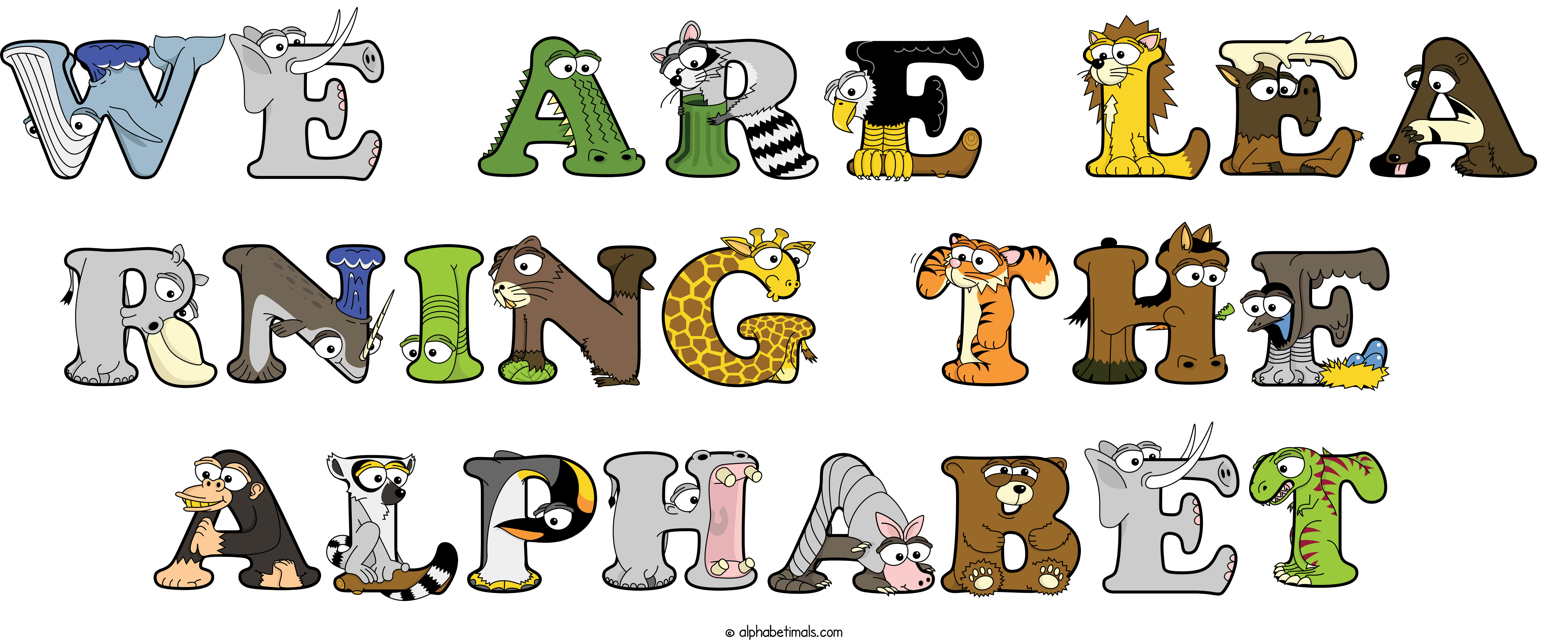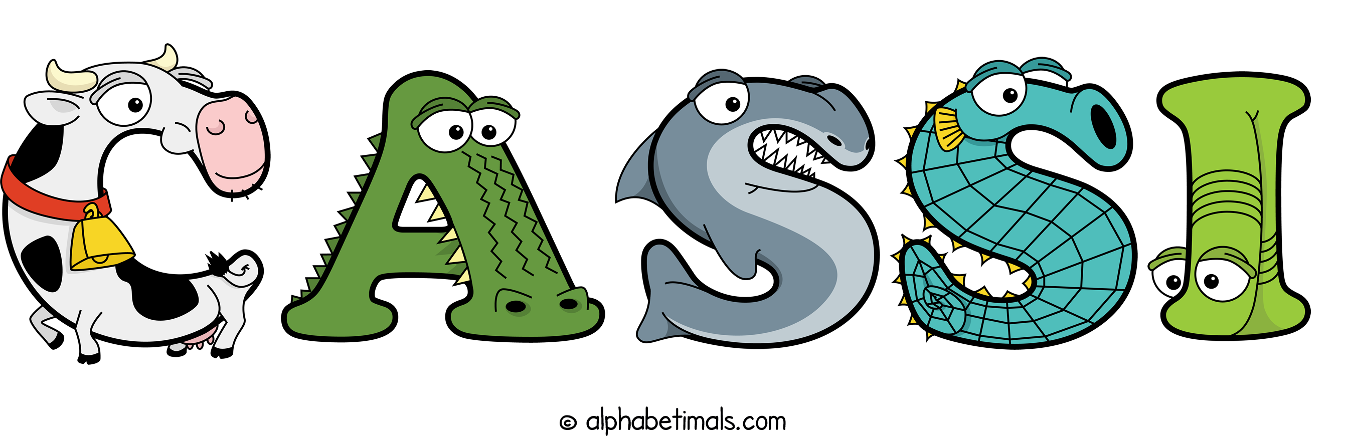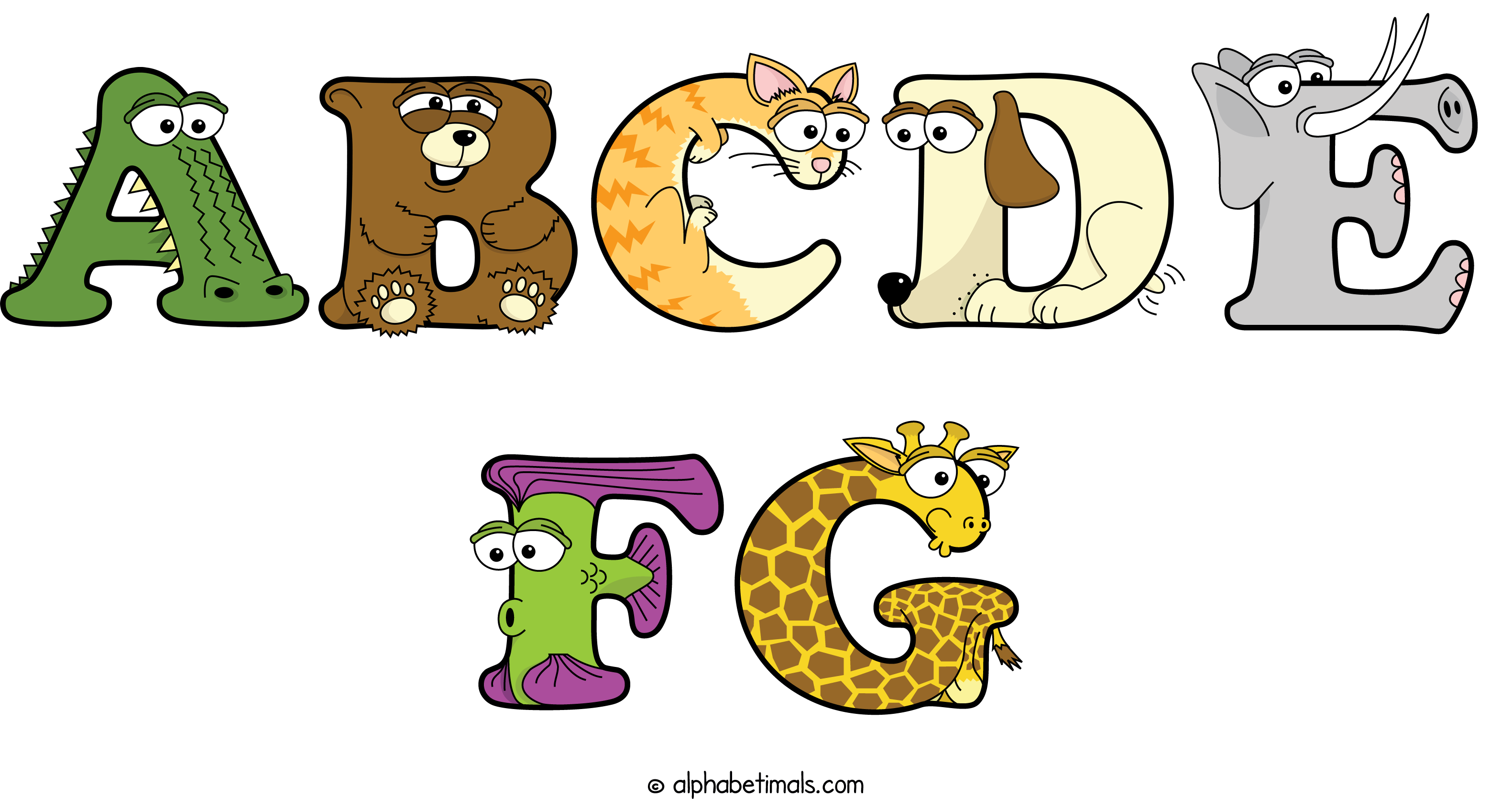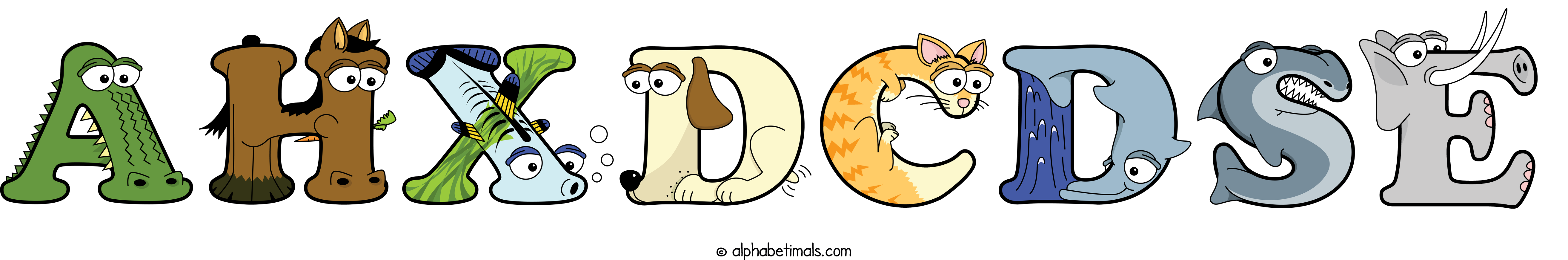 Kids have more fun and learn the ABC’s easier with Alphabetimals, cute cartoon animals shaped like the letters of the alphabet.