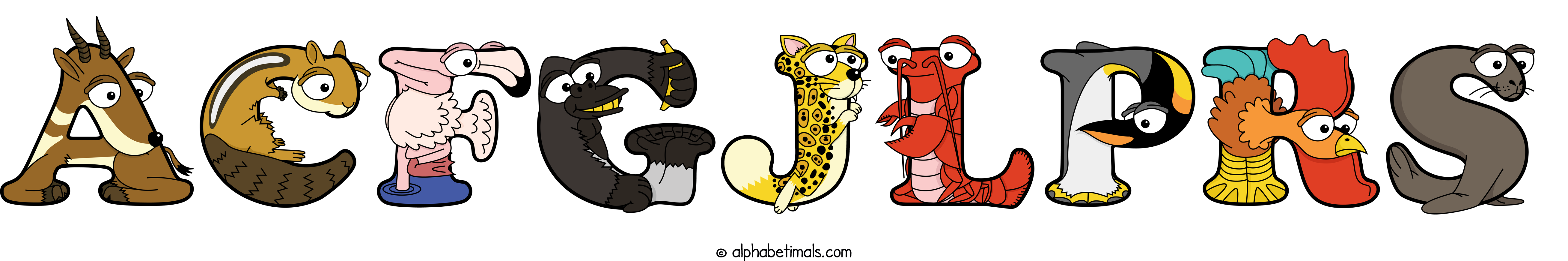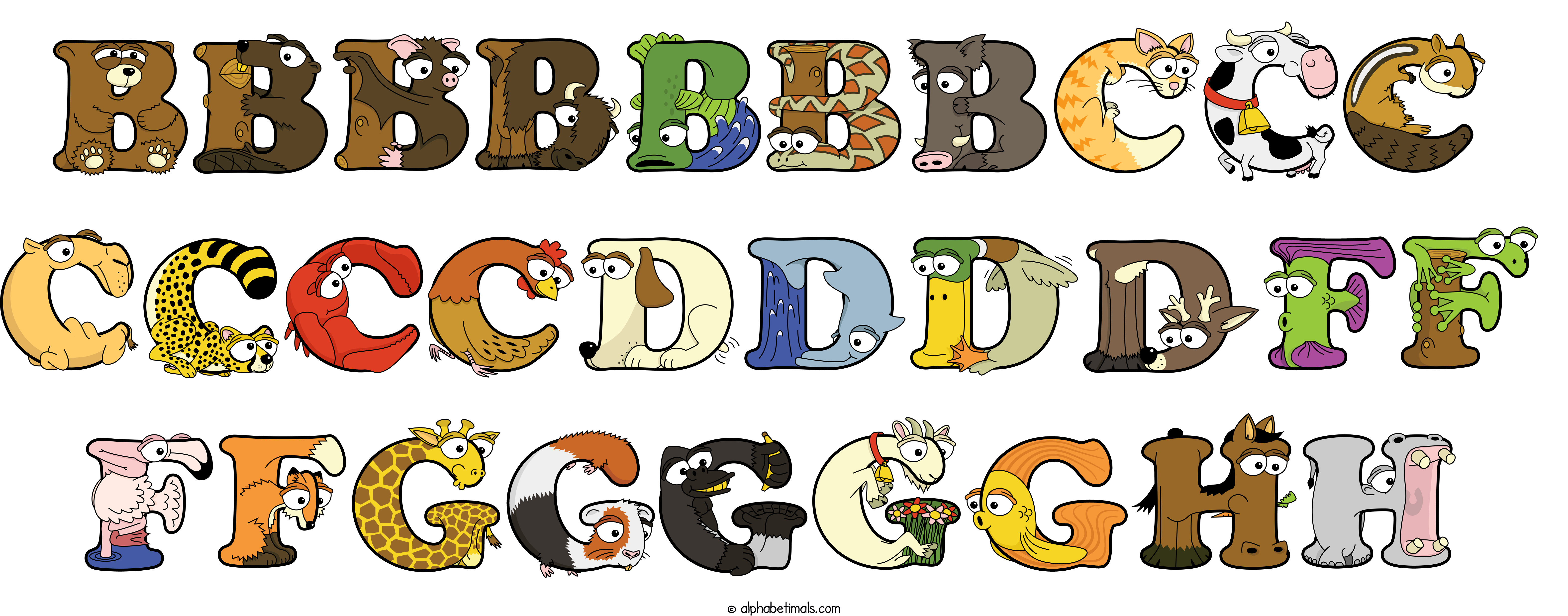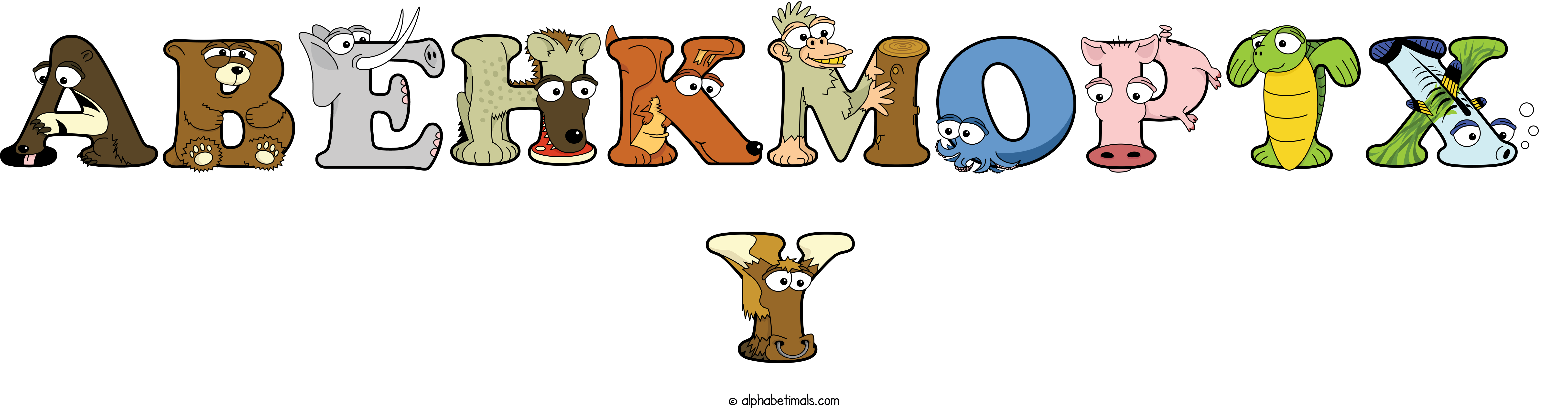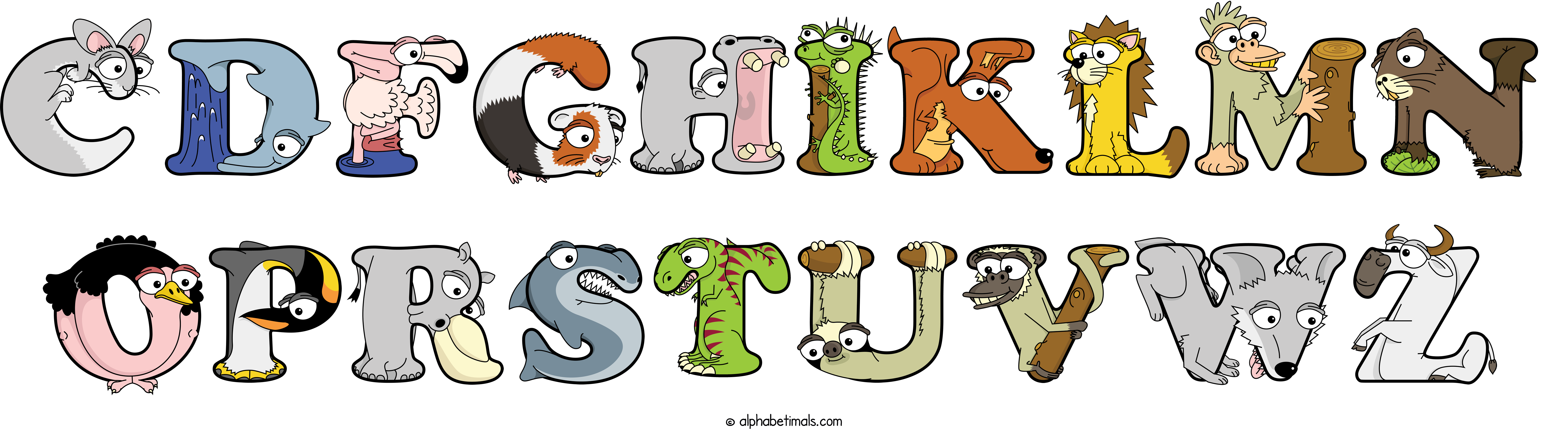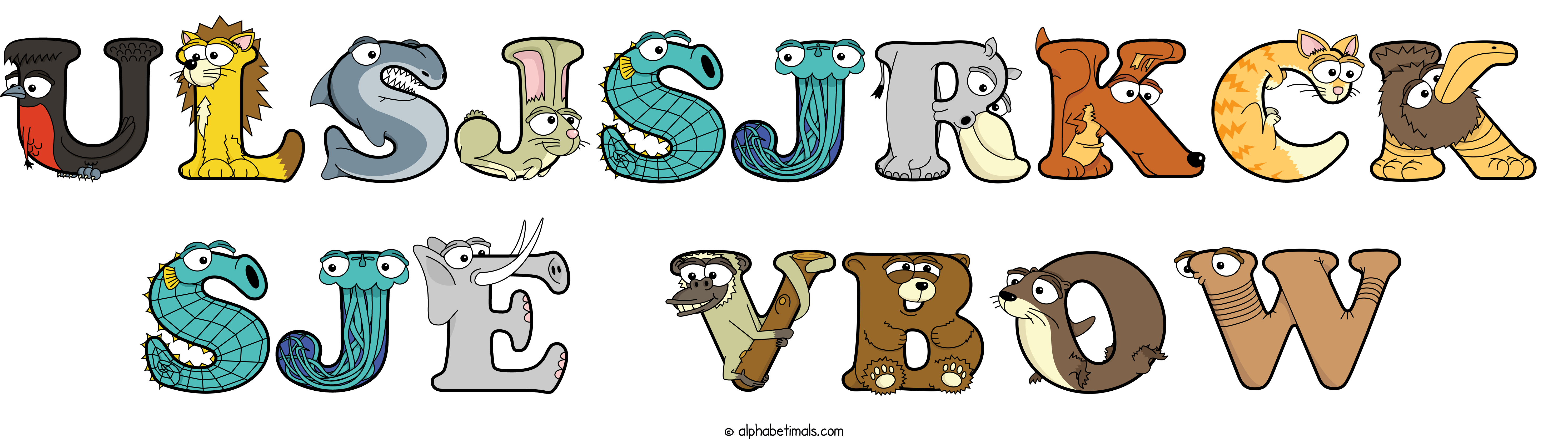 Kids have more fun and learn the ABC’s easier with Alphabetimals, cute cartoon animals shaped like the letters of the alphabet.
