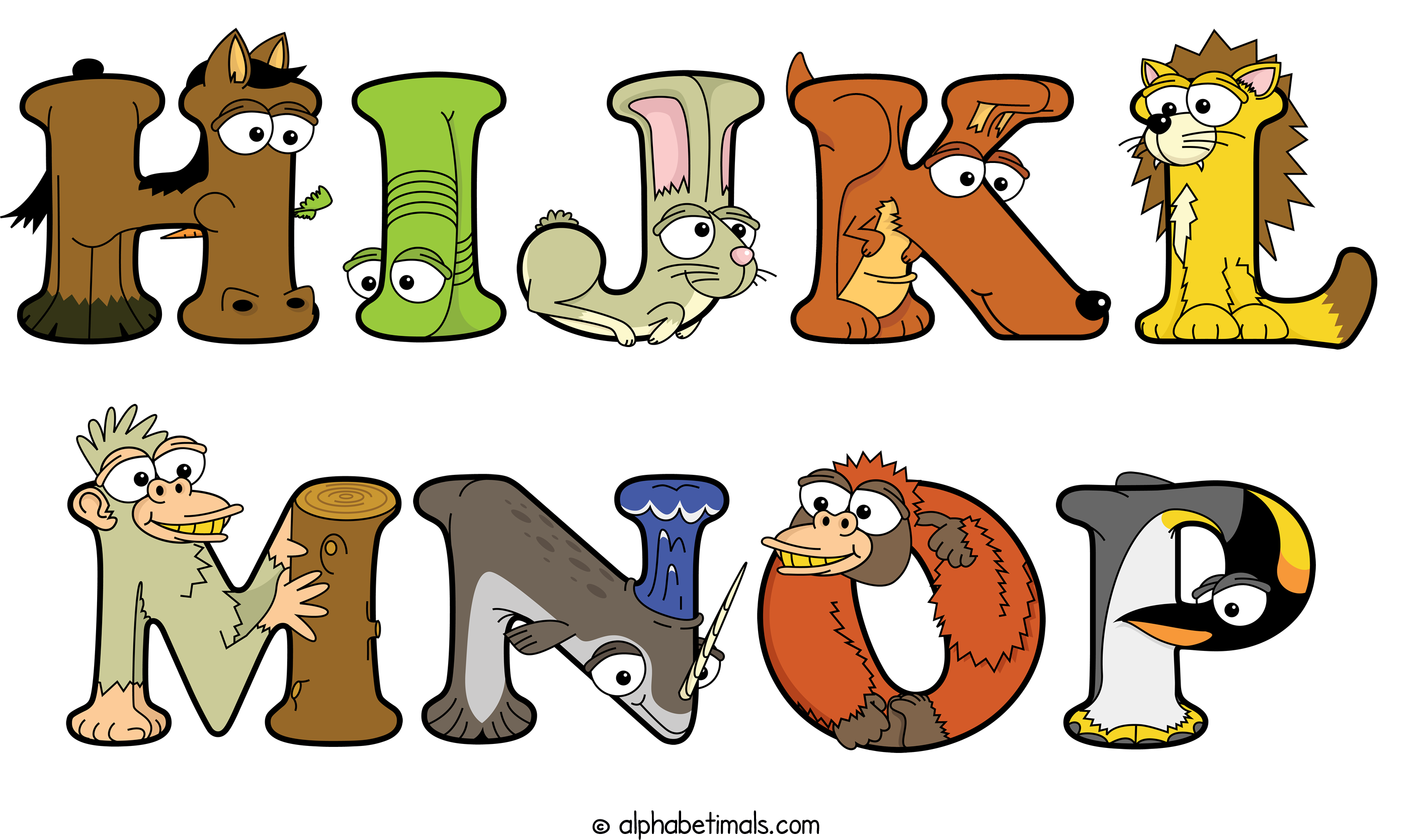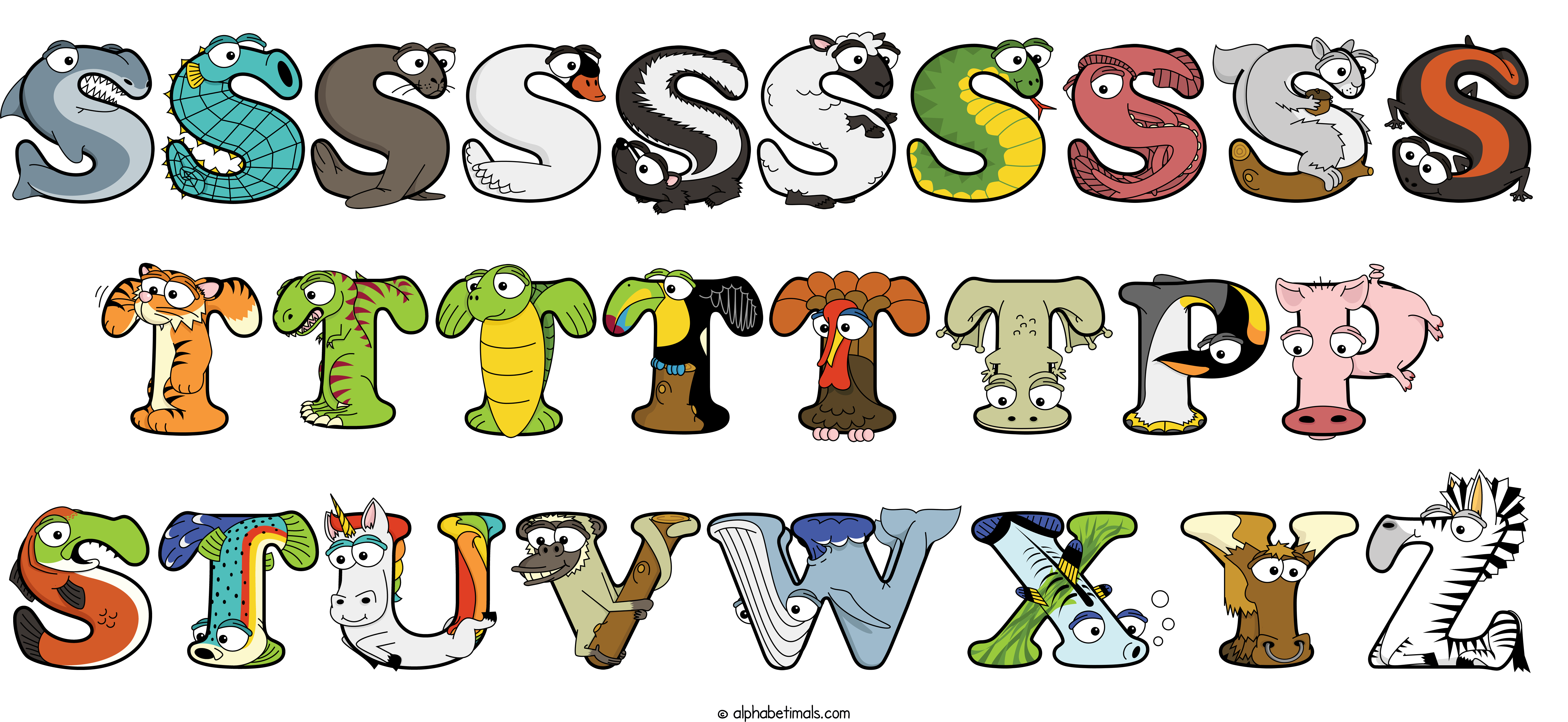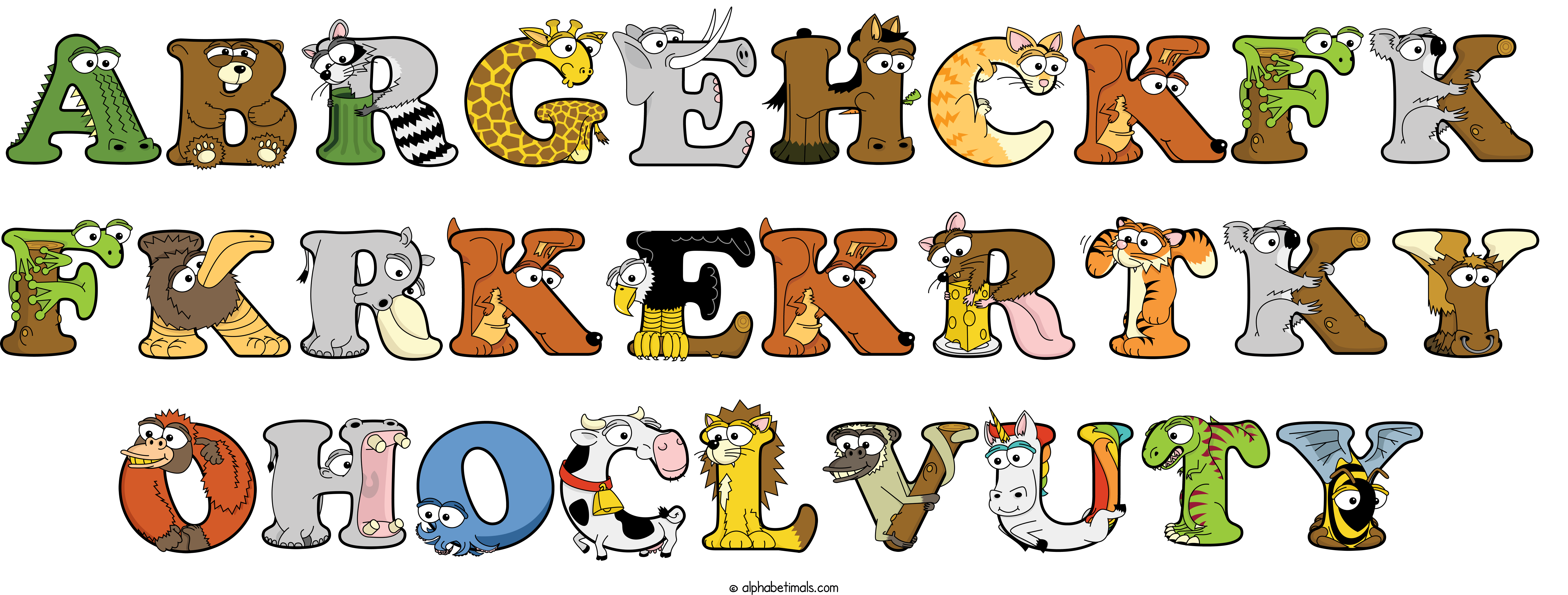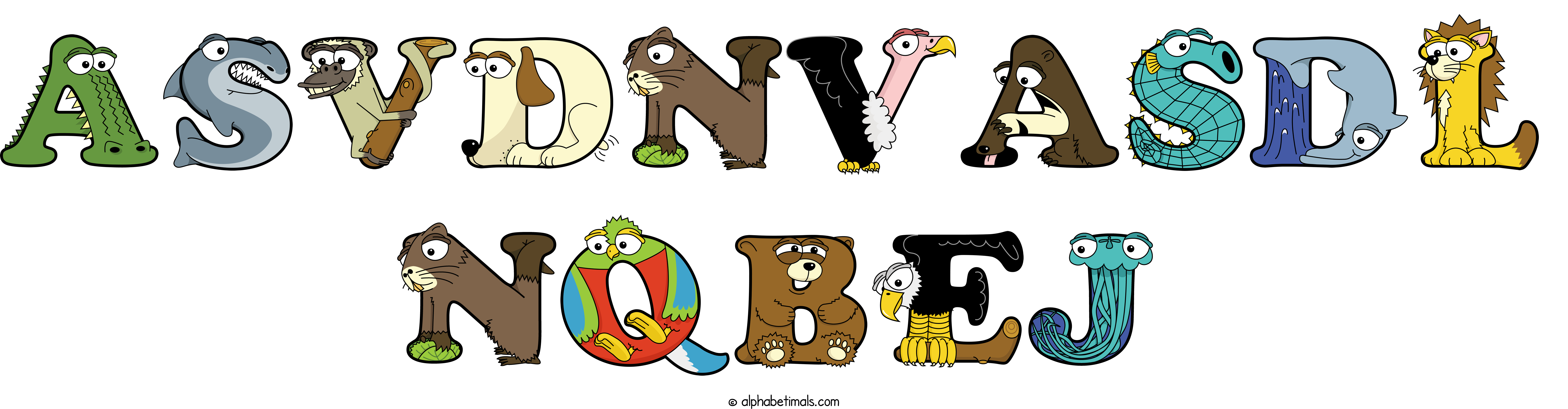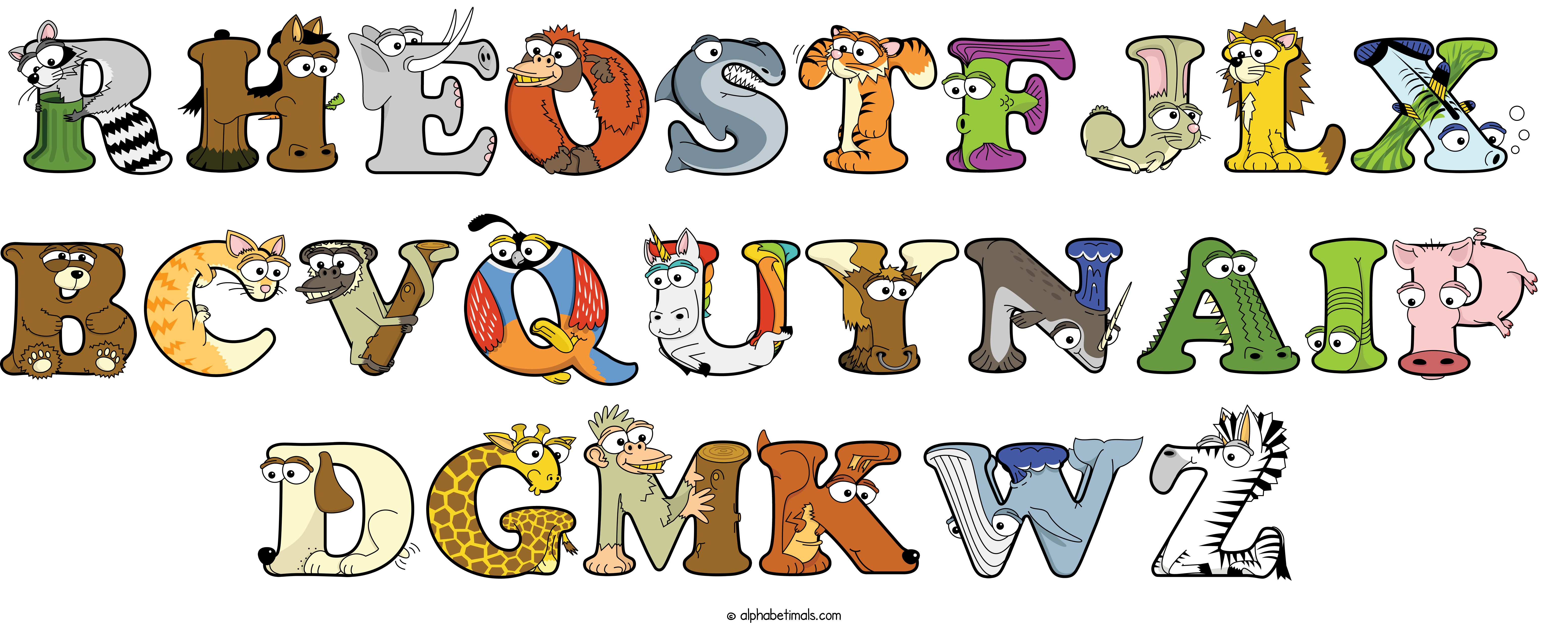 Kids have more fun and learn the ABC’s easier with Alphabetimals, cute cartoon animals shaped like the letters of the alphabet.