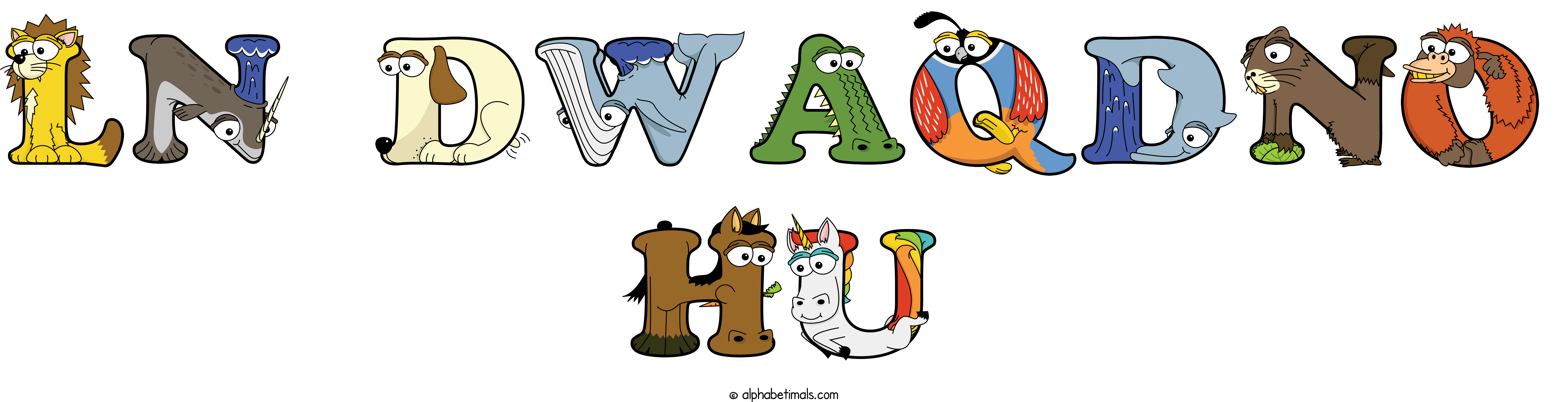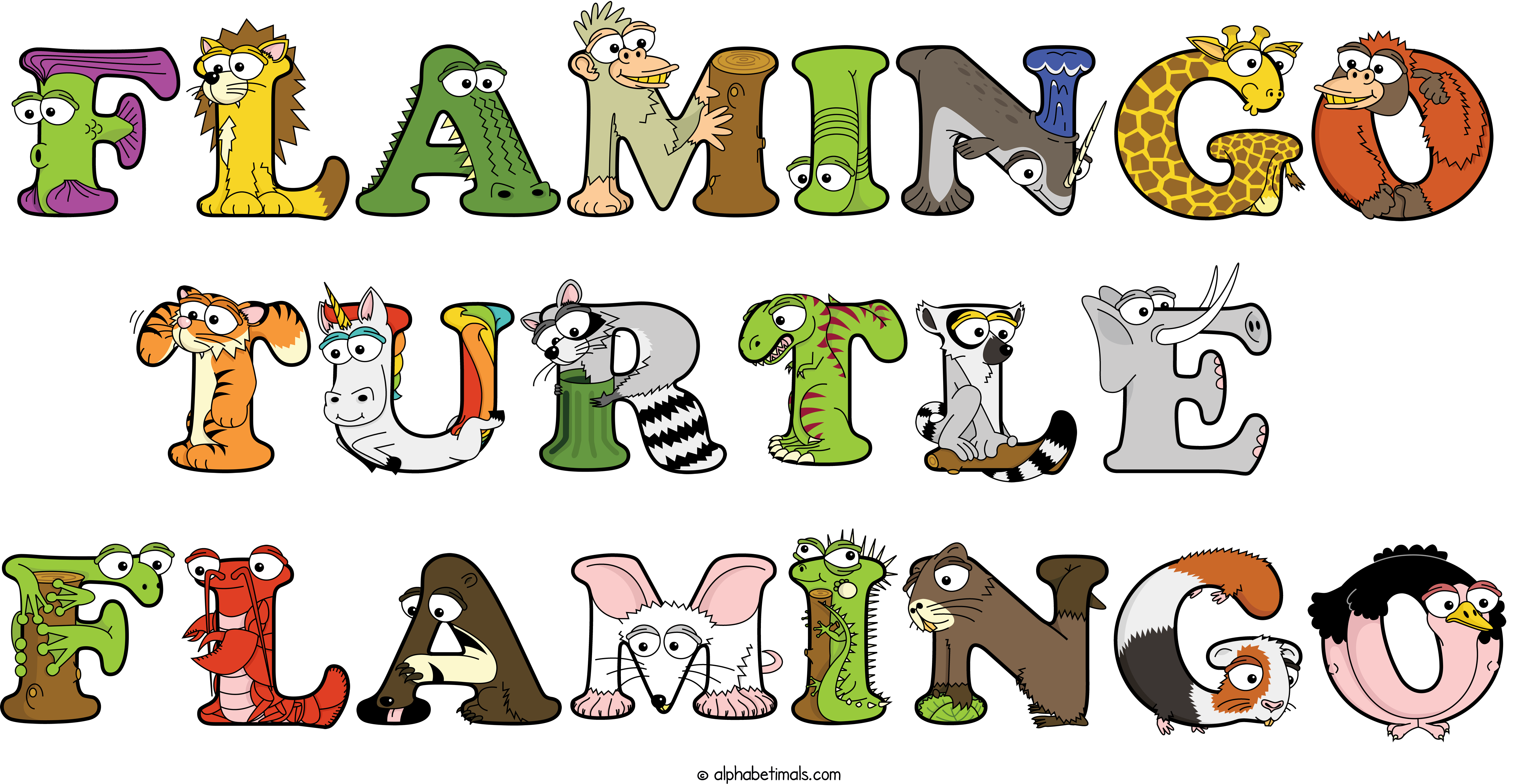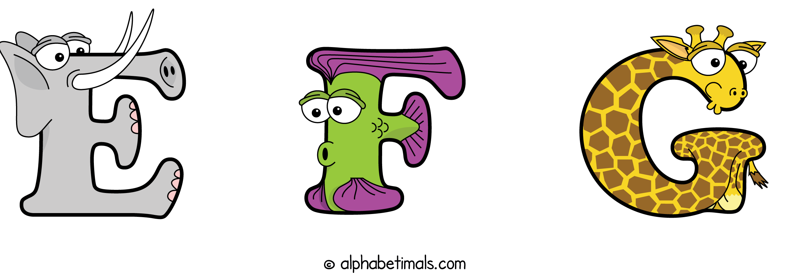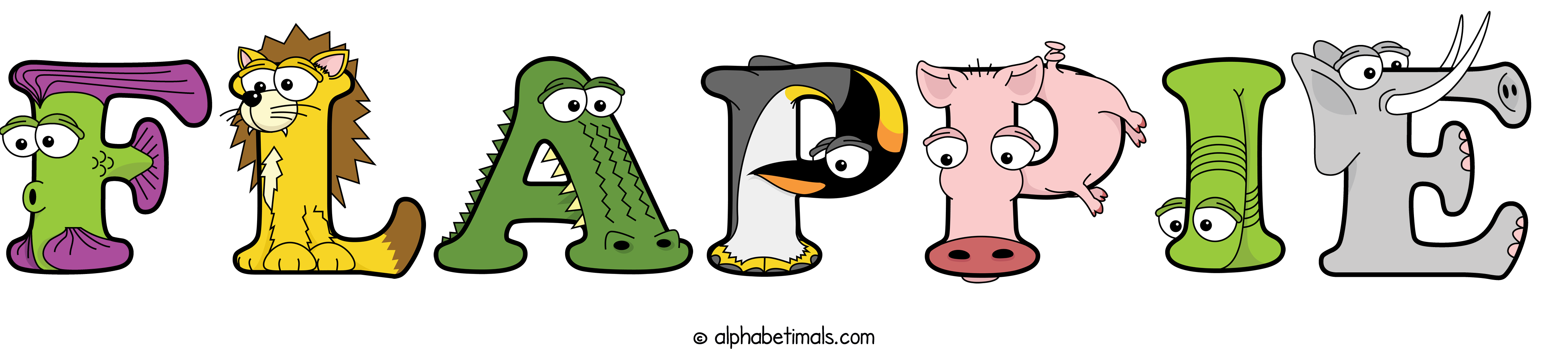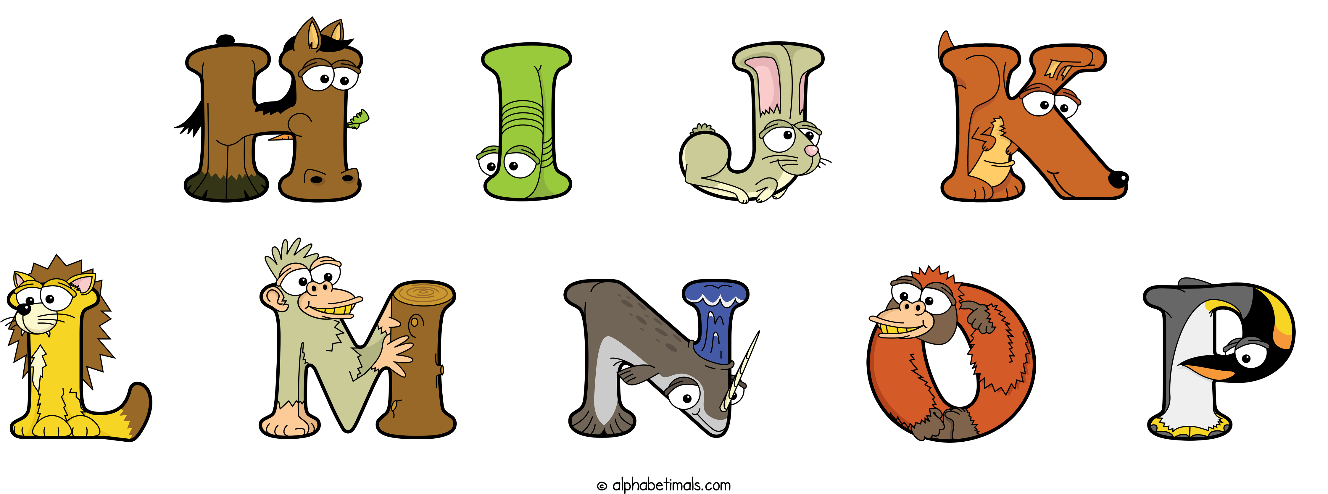 Kids have more fun and learn the ABC’s easier with Alphabetimals, cute cartoon animals shaped like the letters of the alphabet.