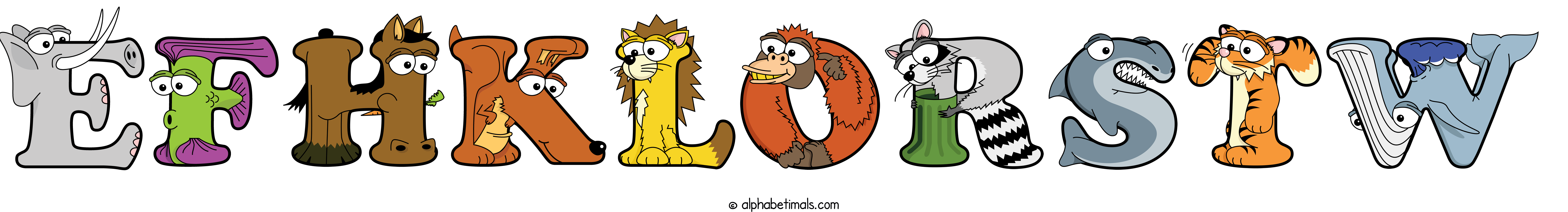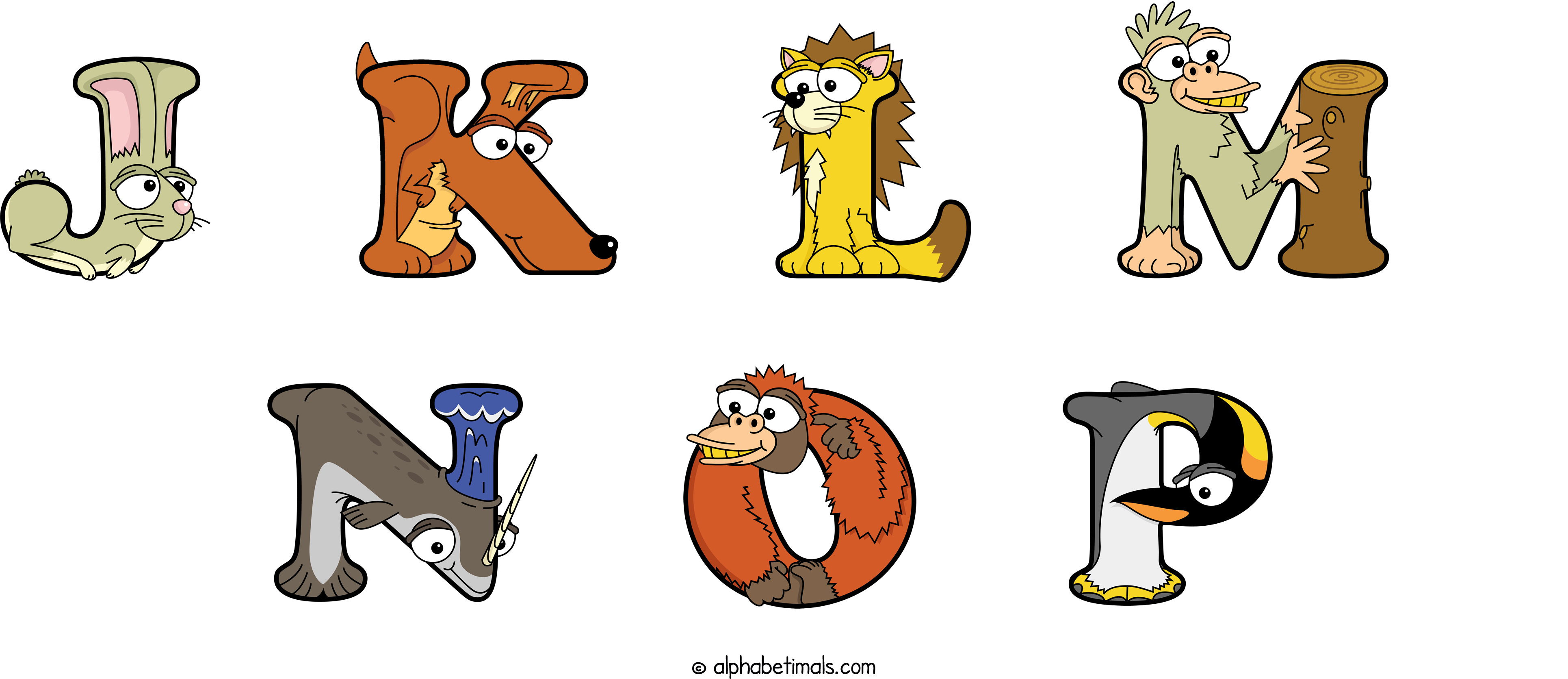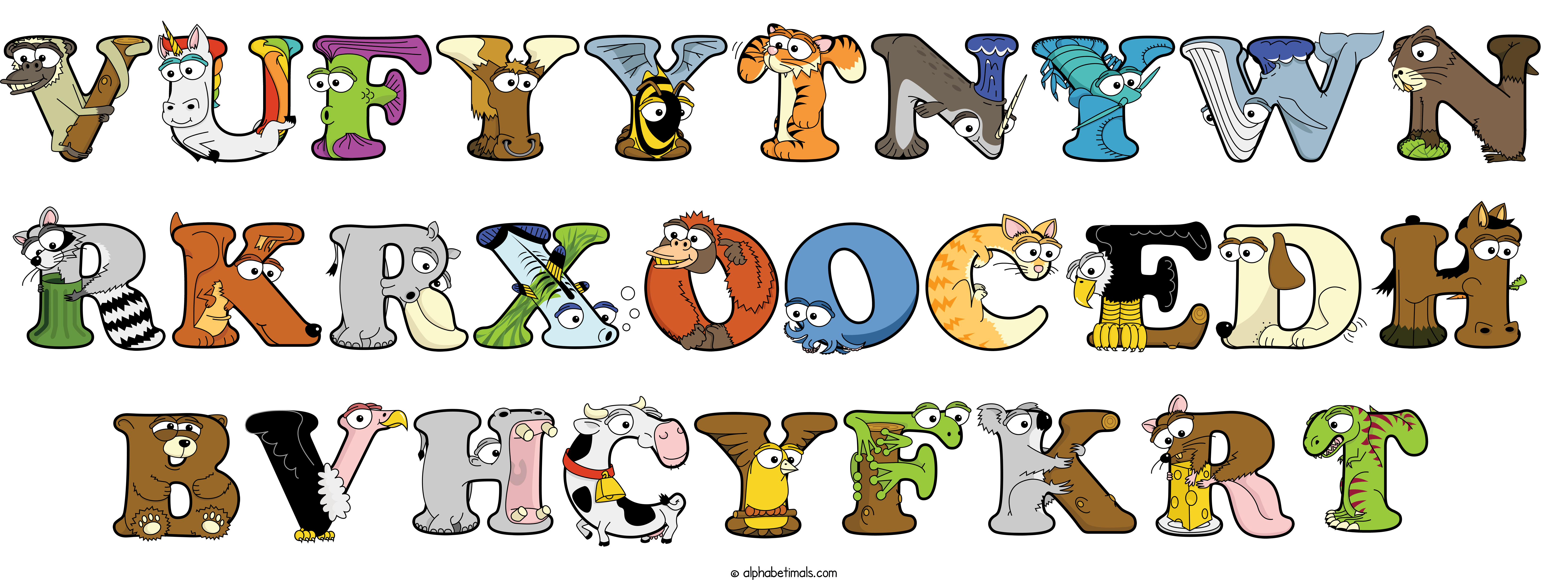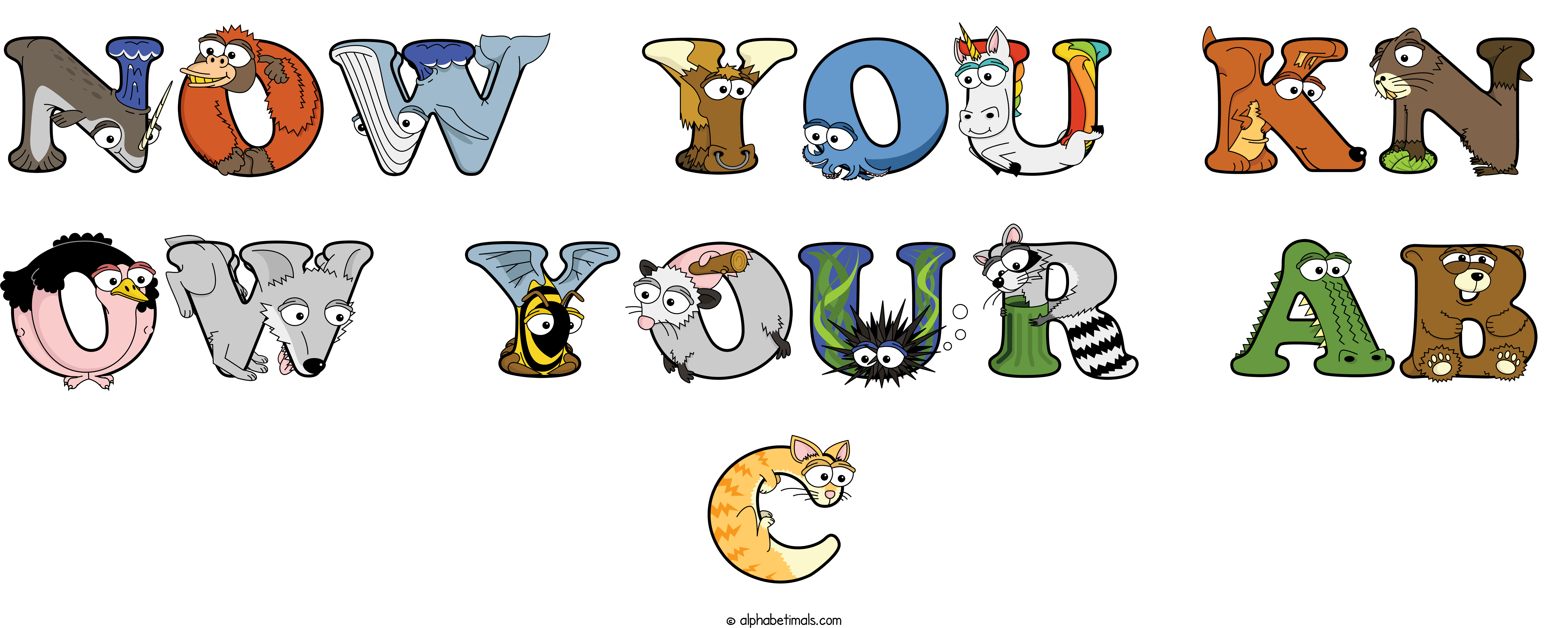 Kids have more fun and learn the ABC’s easier with Alphabetimals, cute cartoon animals shaped like the letters of the alphabet.