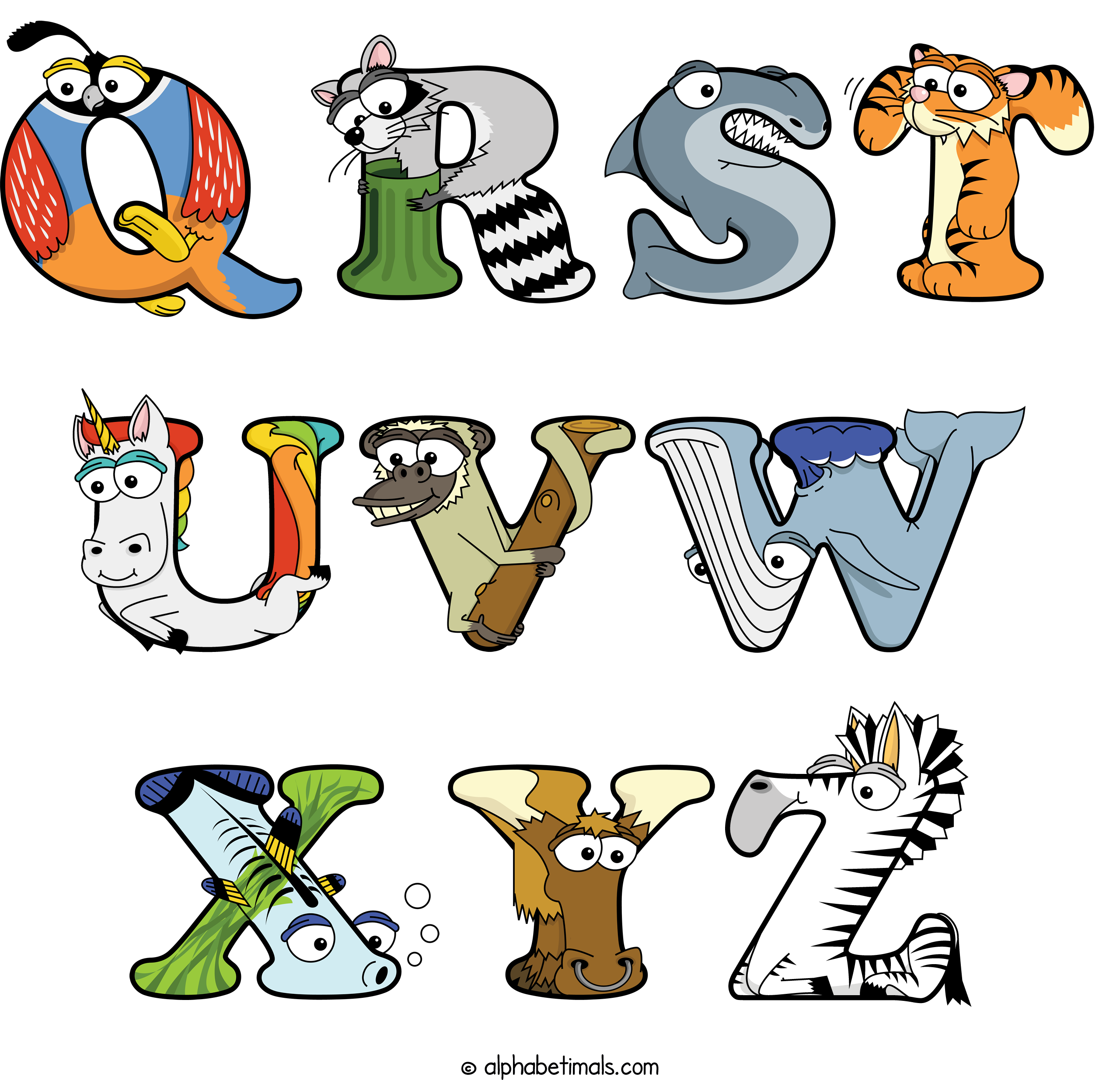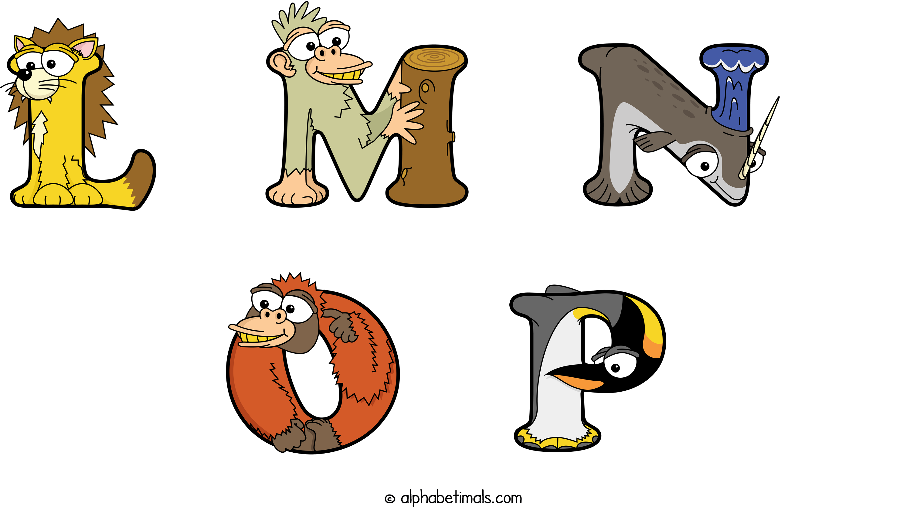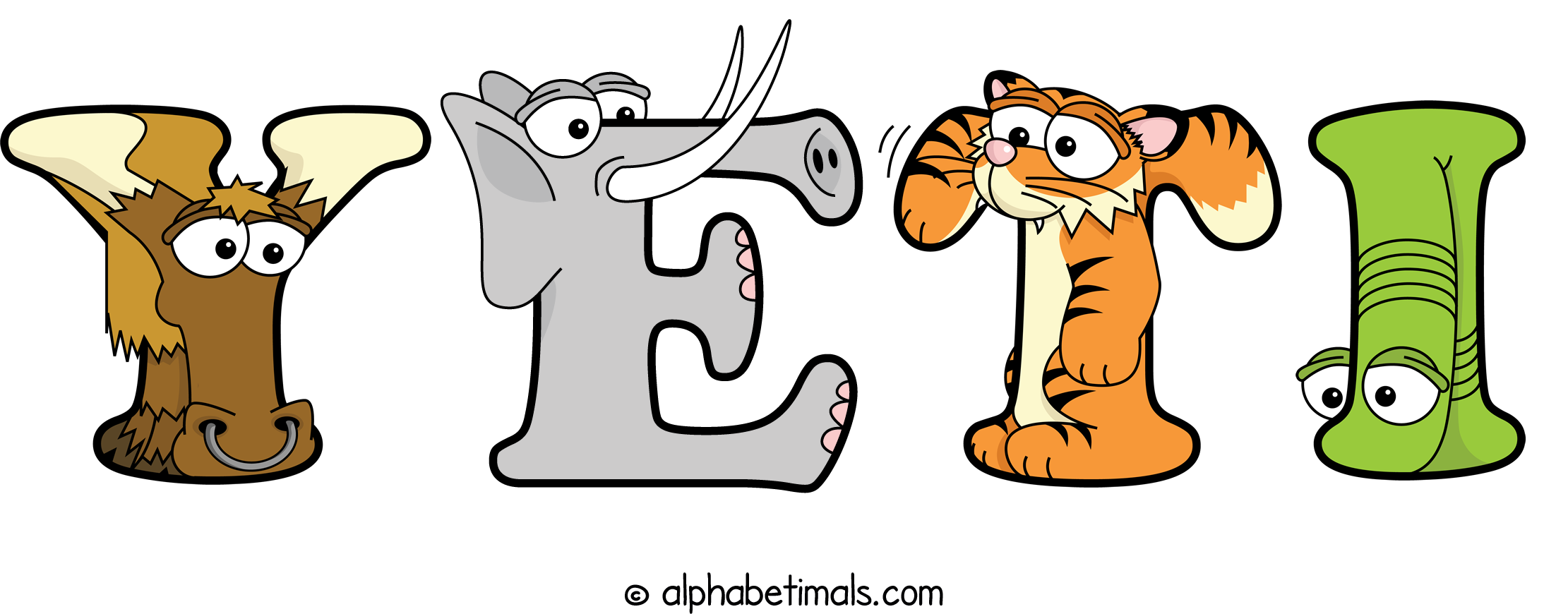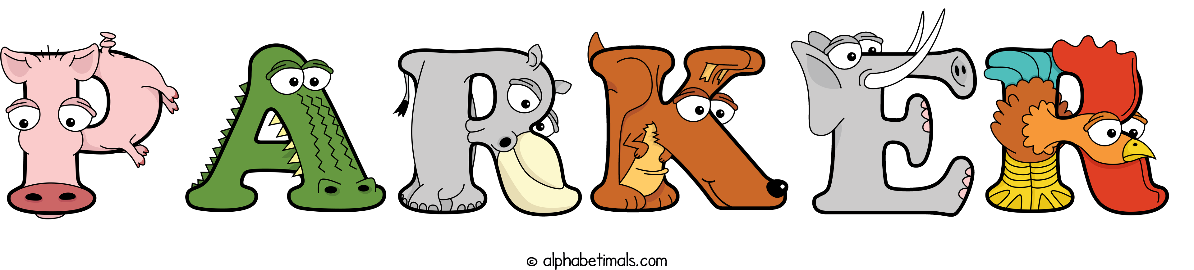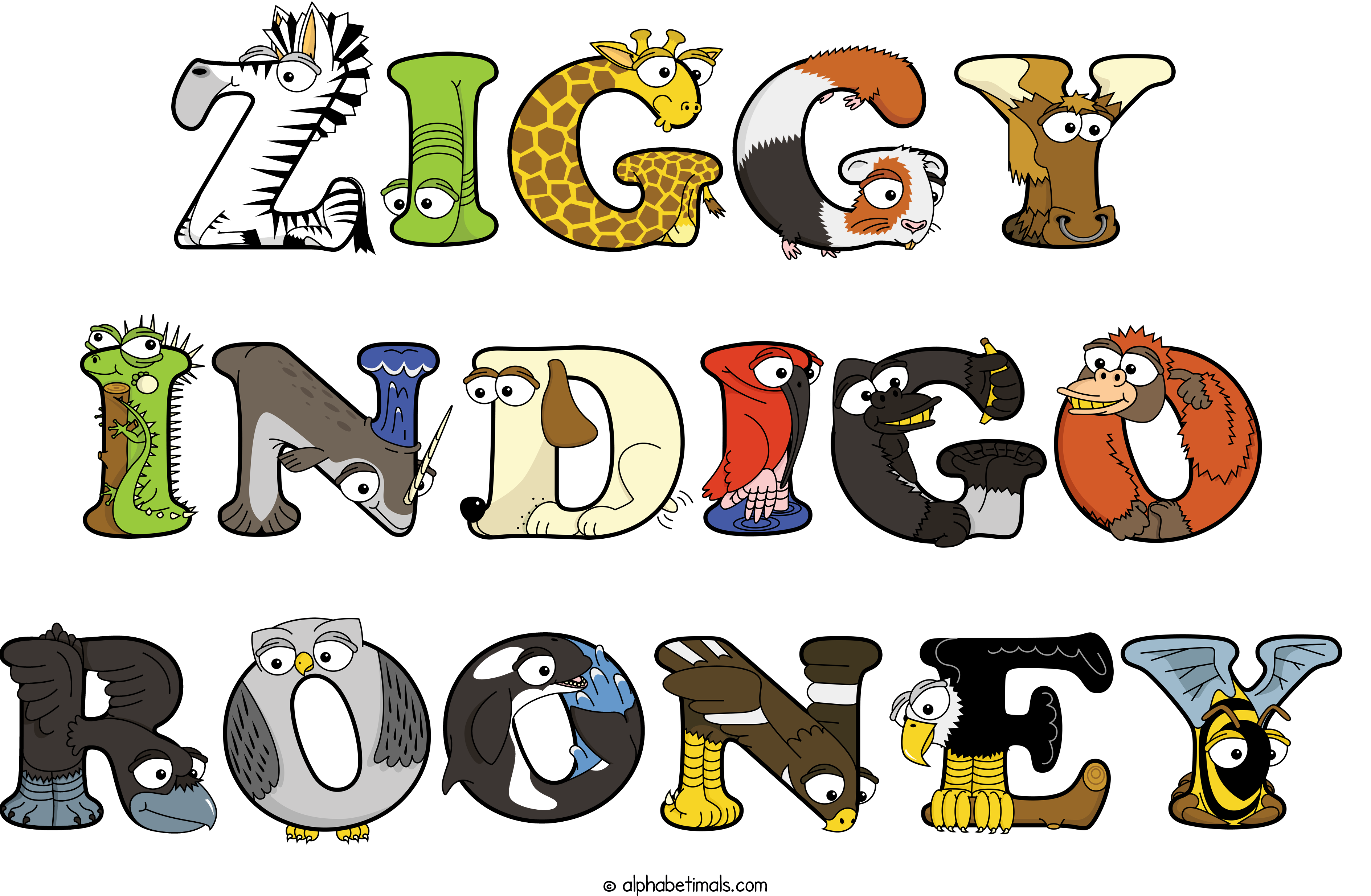 Kids have more fun and learn the ABC’s easier with Alphabetimals, cute cartoon animals shaped like the letters of the alphabet.