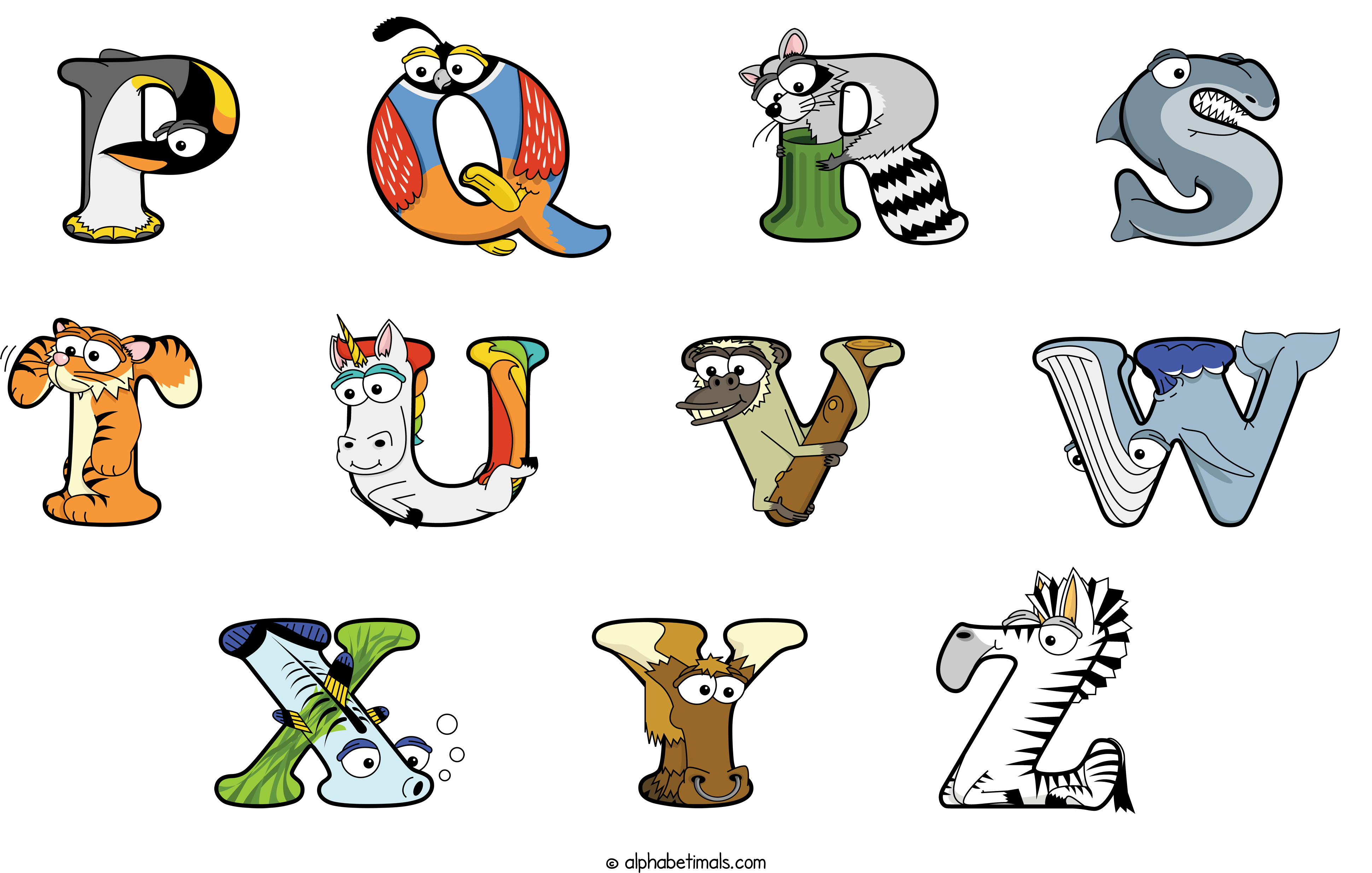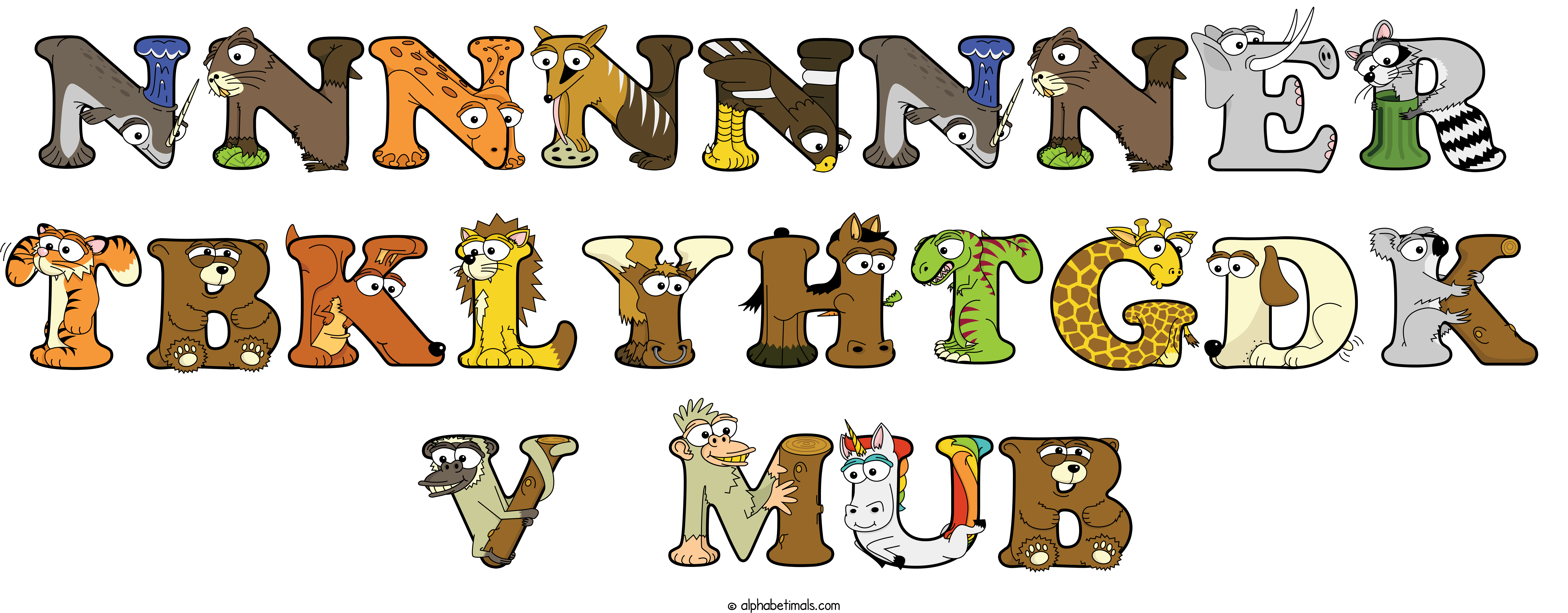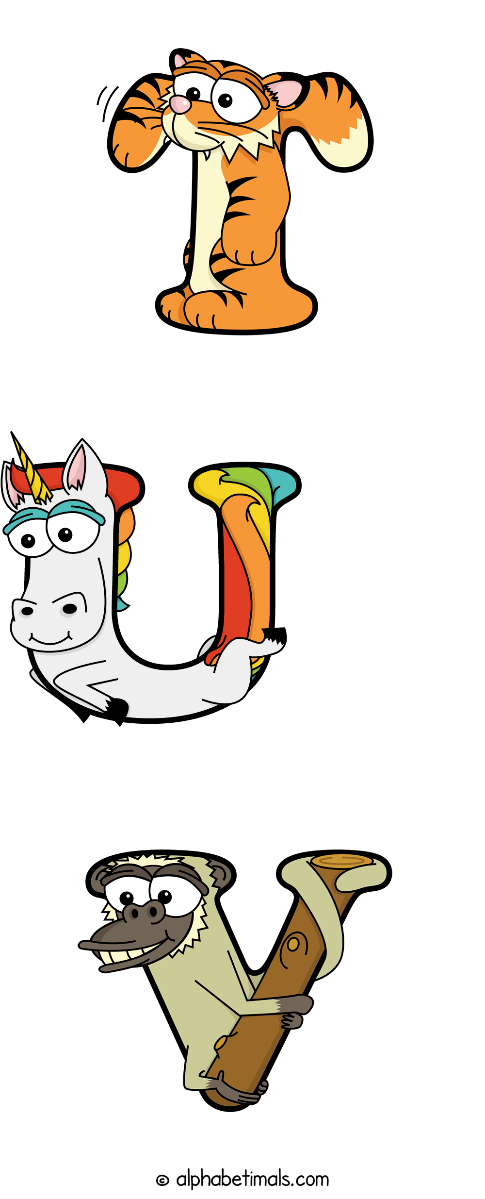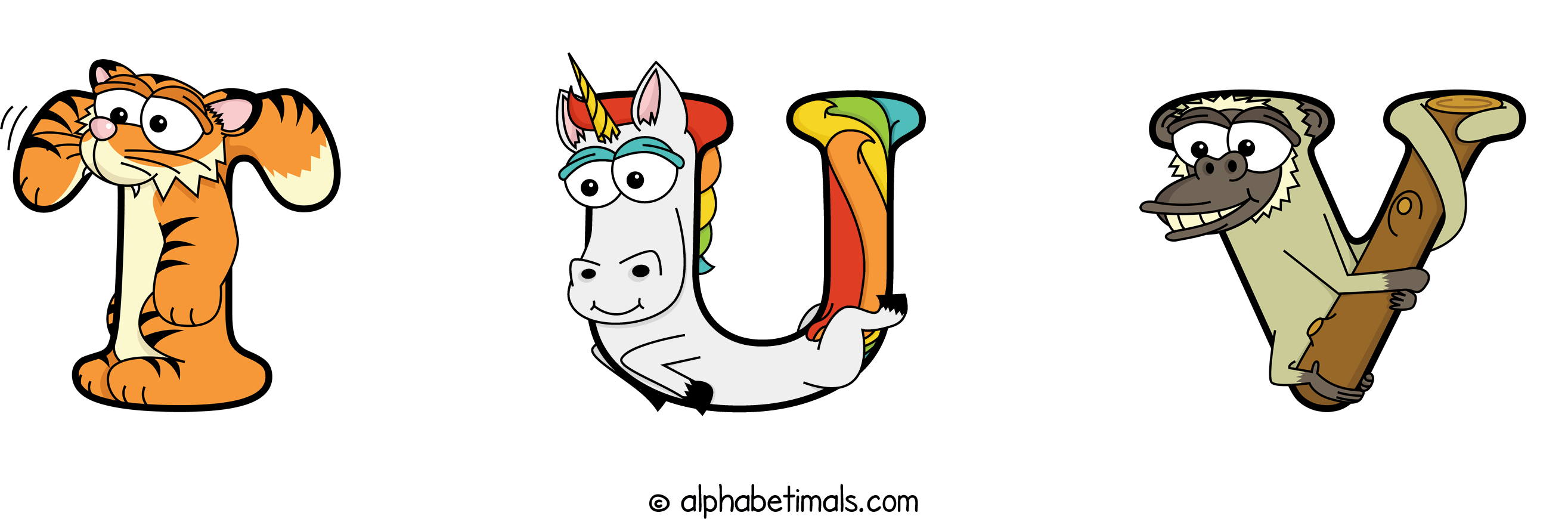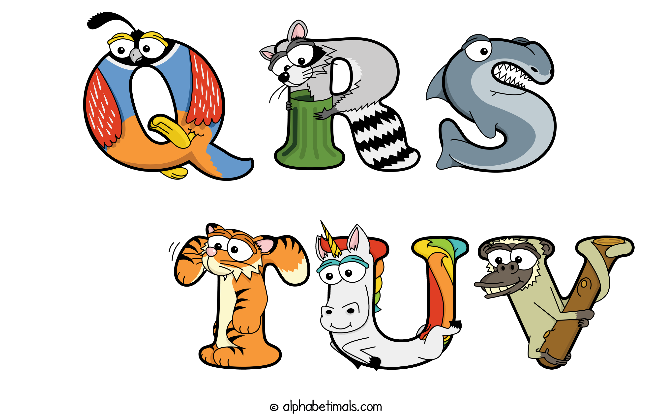 Kids have more fun and learn the ABC’s easier with Alphabetimals, cute cartoon animals shaped like the letters of the alphabet.