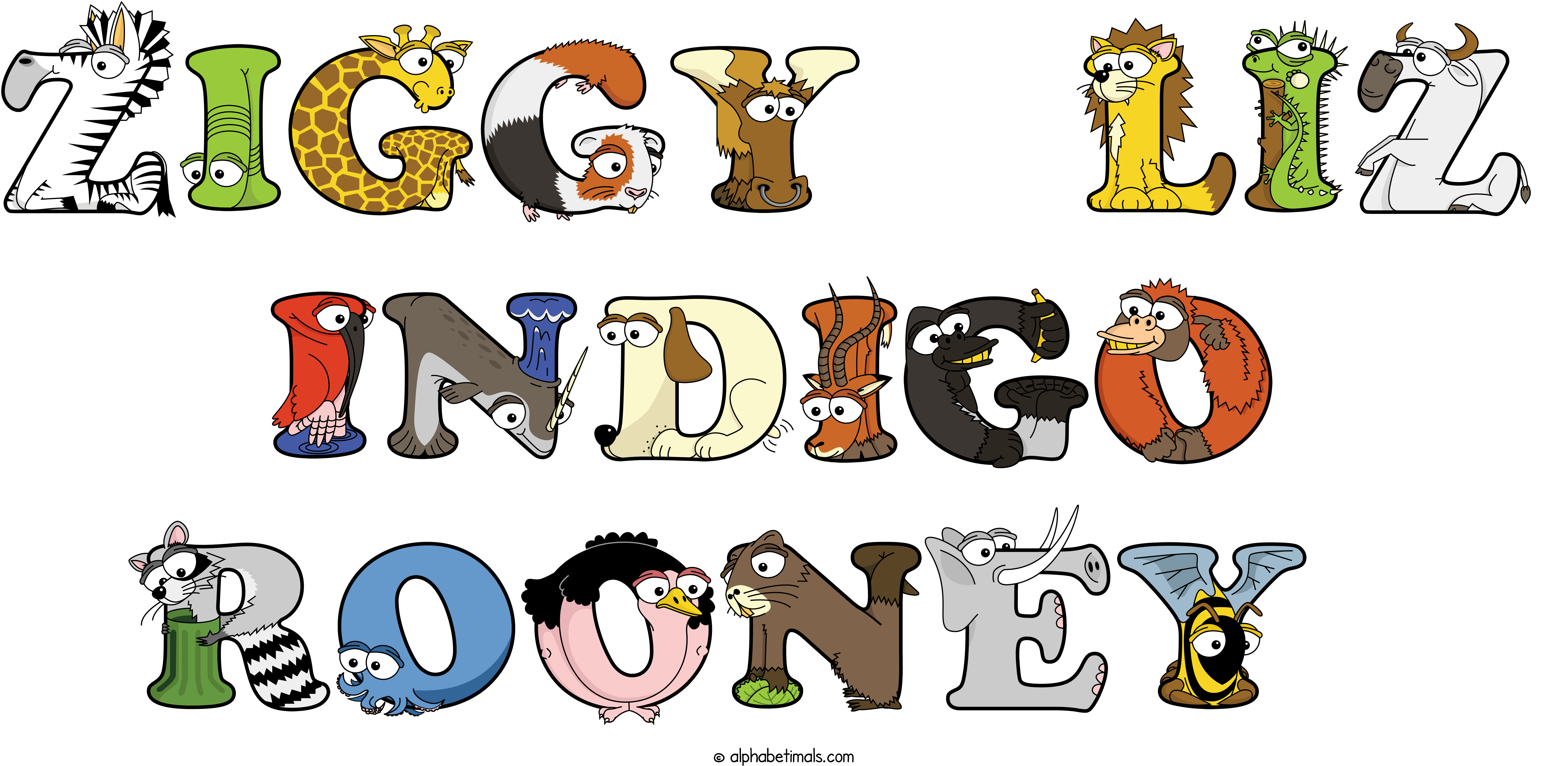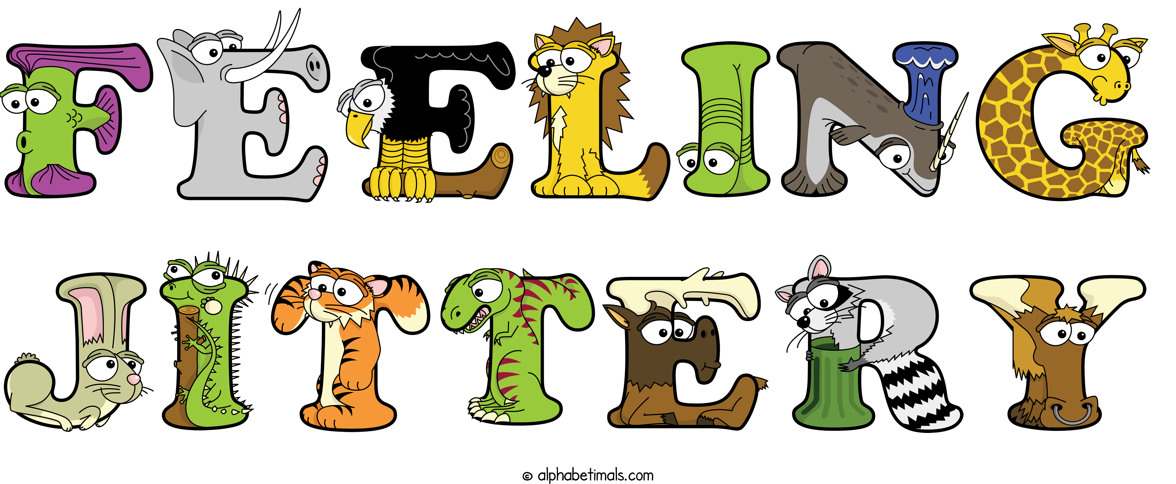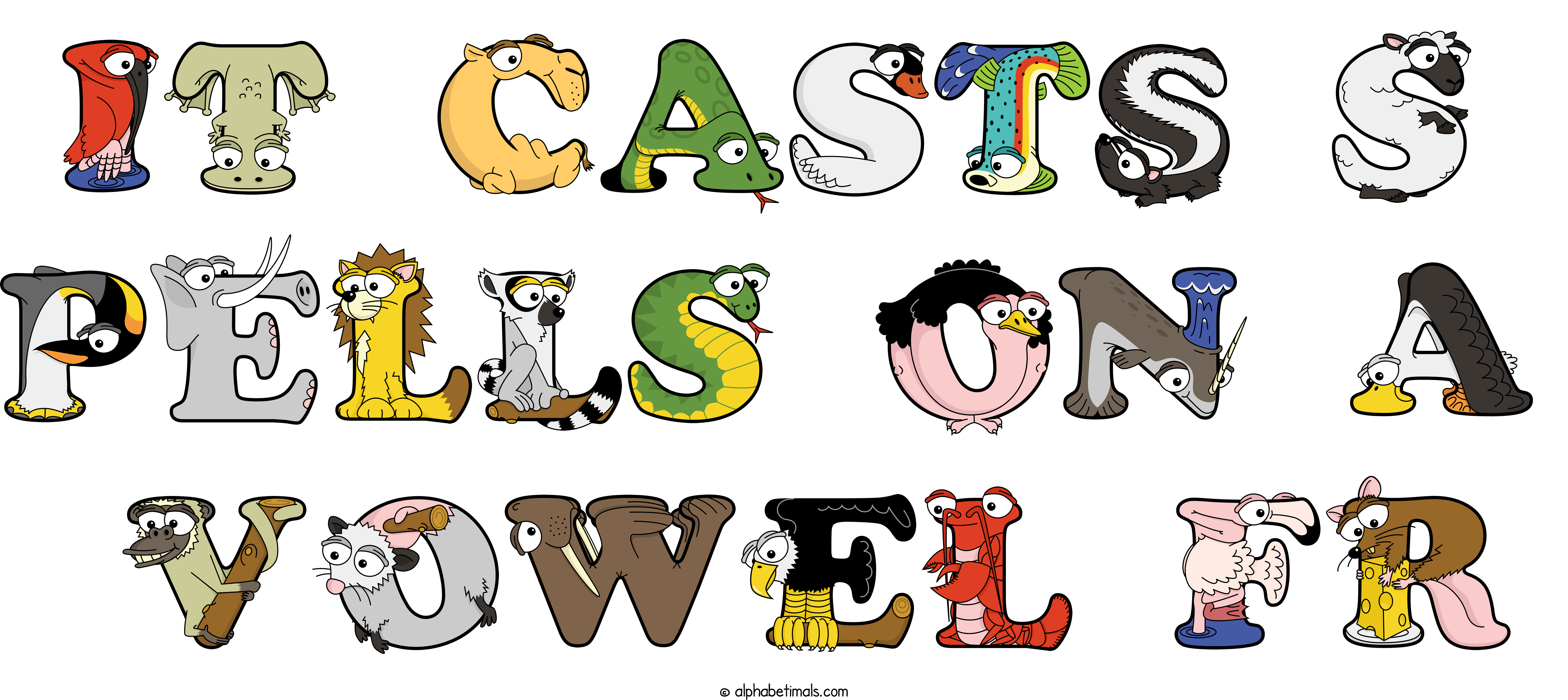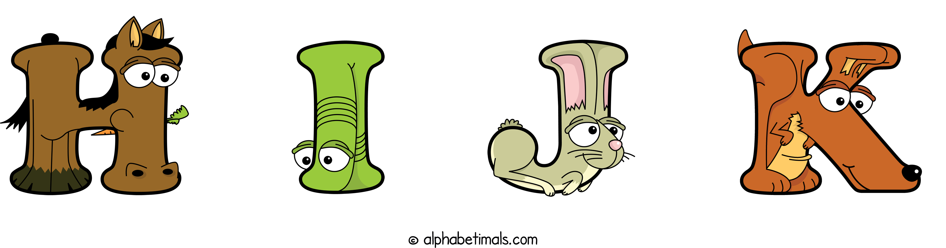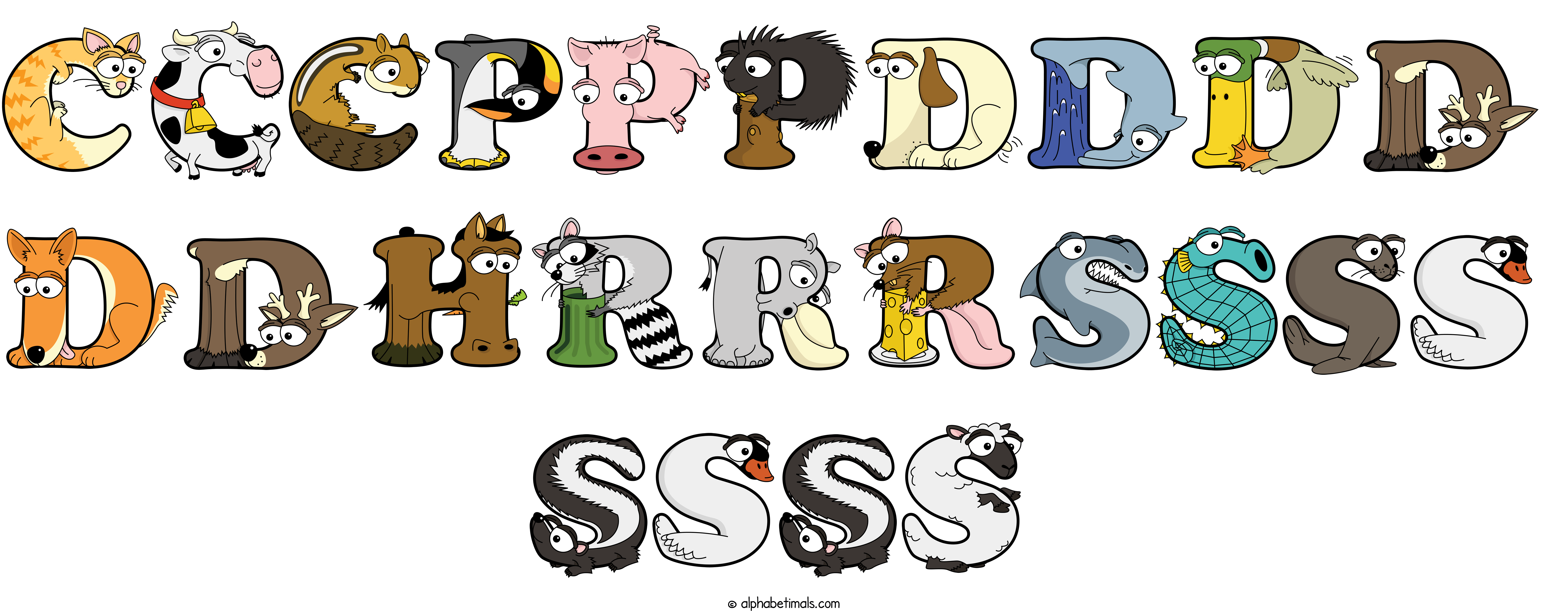 Kids have more fun and learn the ABC’s easier with Alphabetimals, cute cartoon animals shaped like the letters of the alphabet.