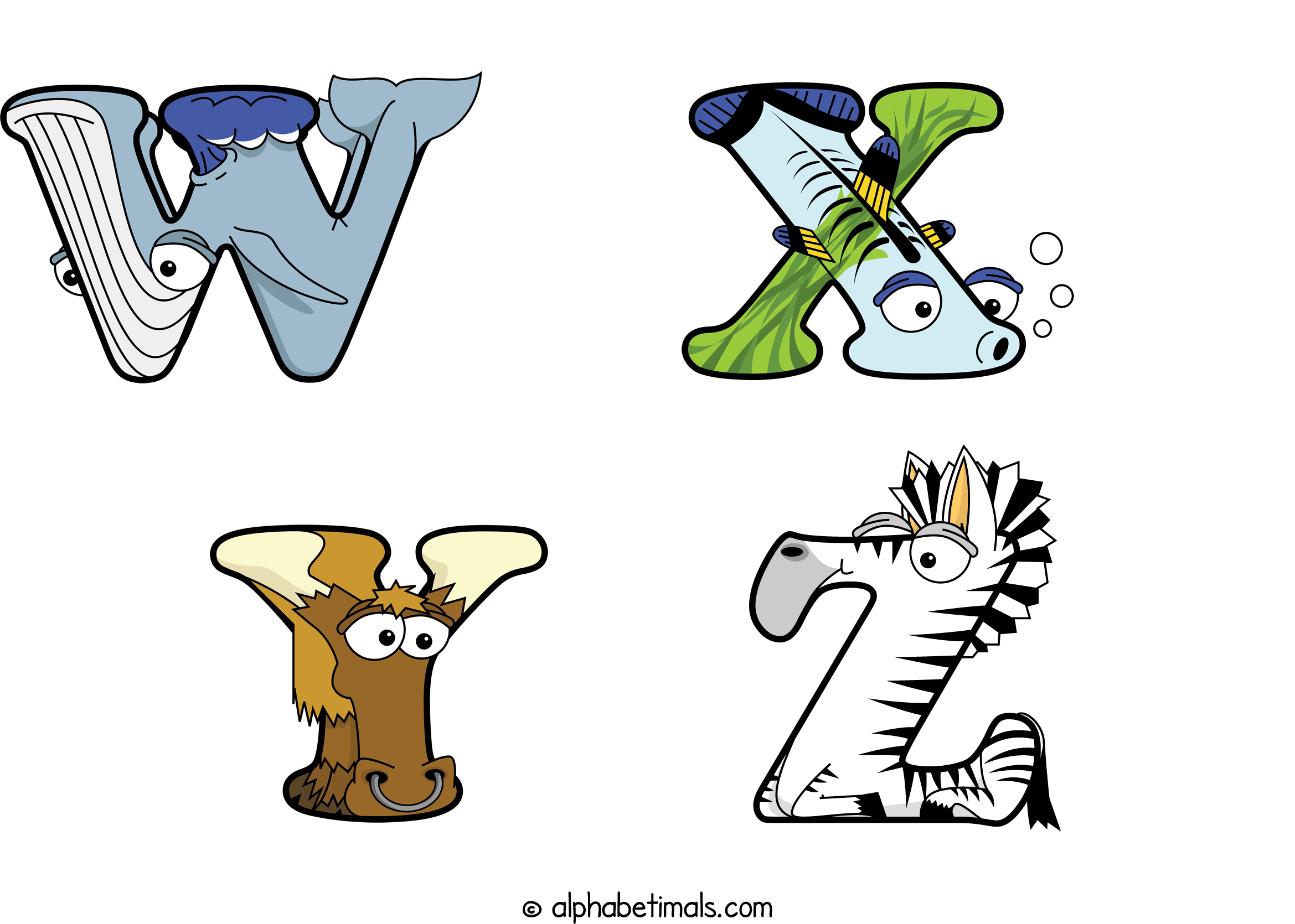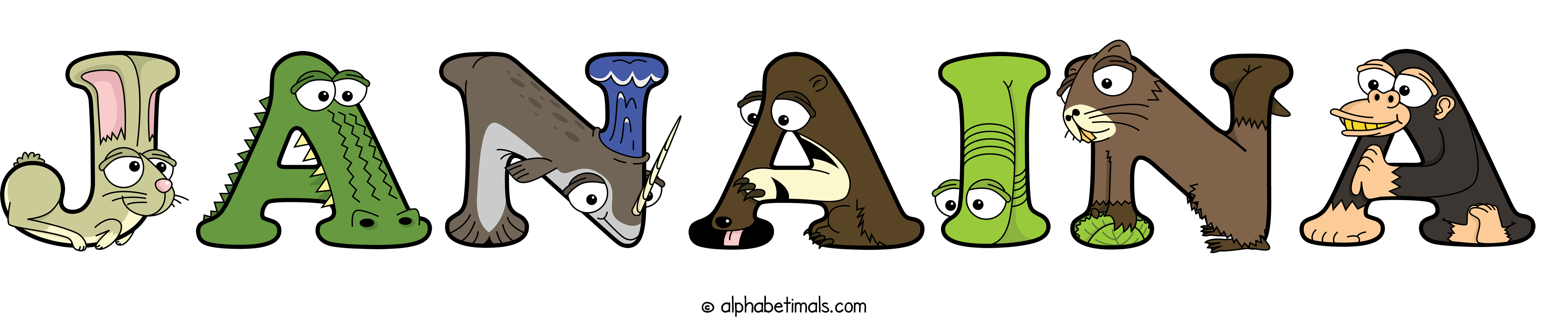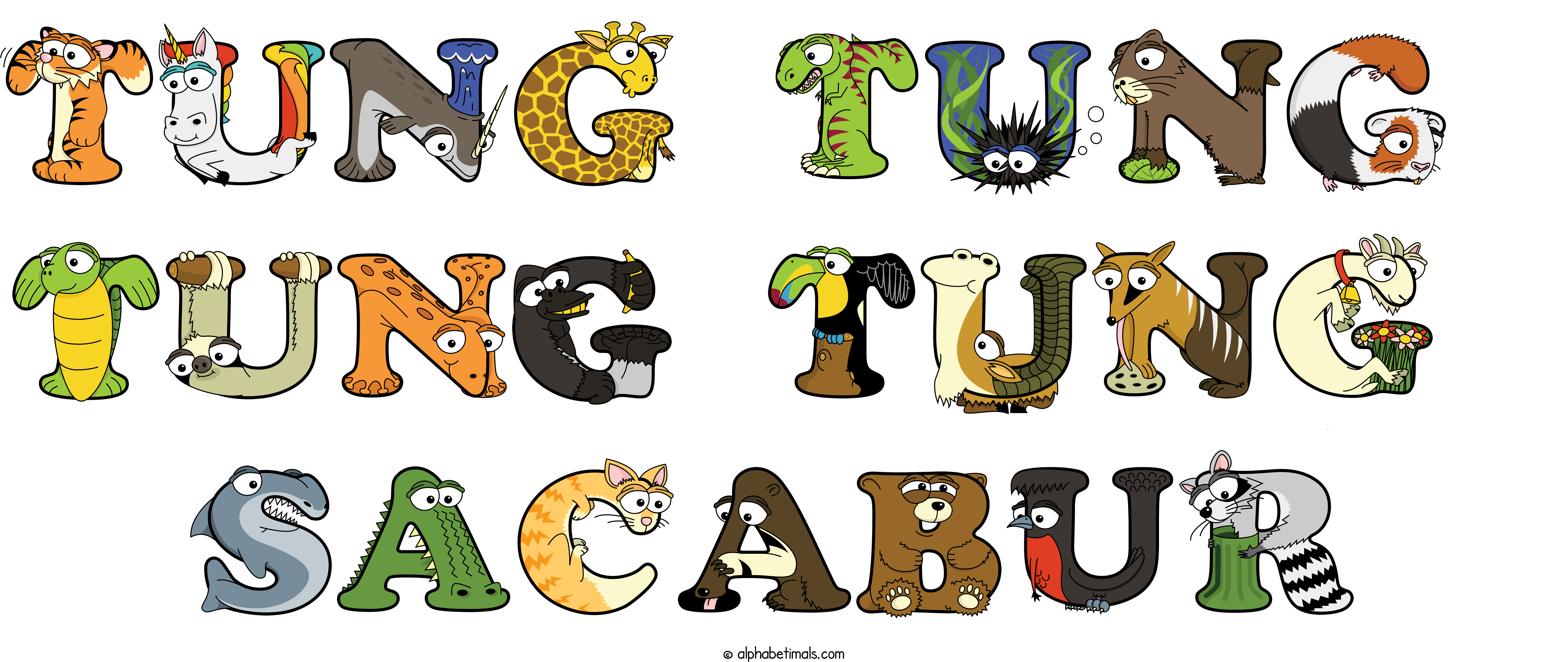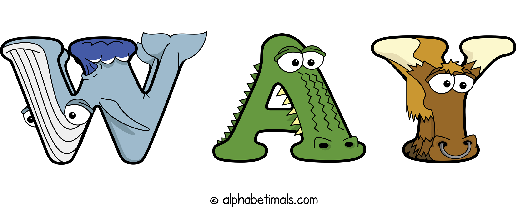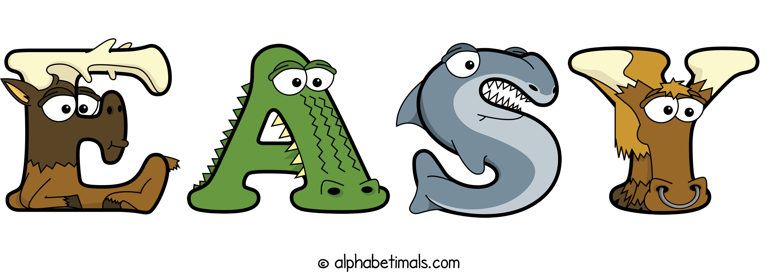 Kids have more fun and learn the ABC’s easier with Alphabetimals, cute cartoon animals shaped like the letters of the alphabet.