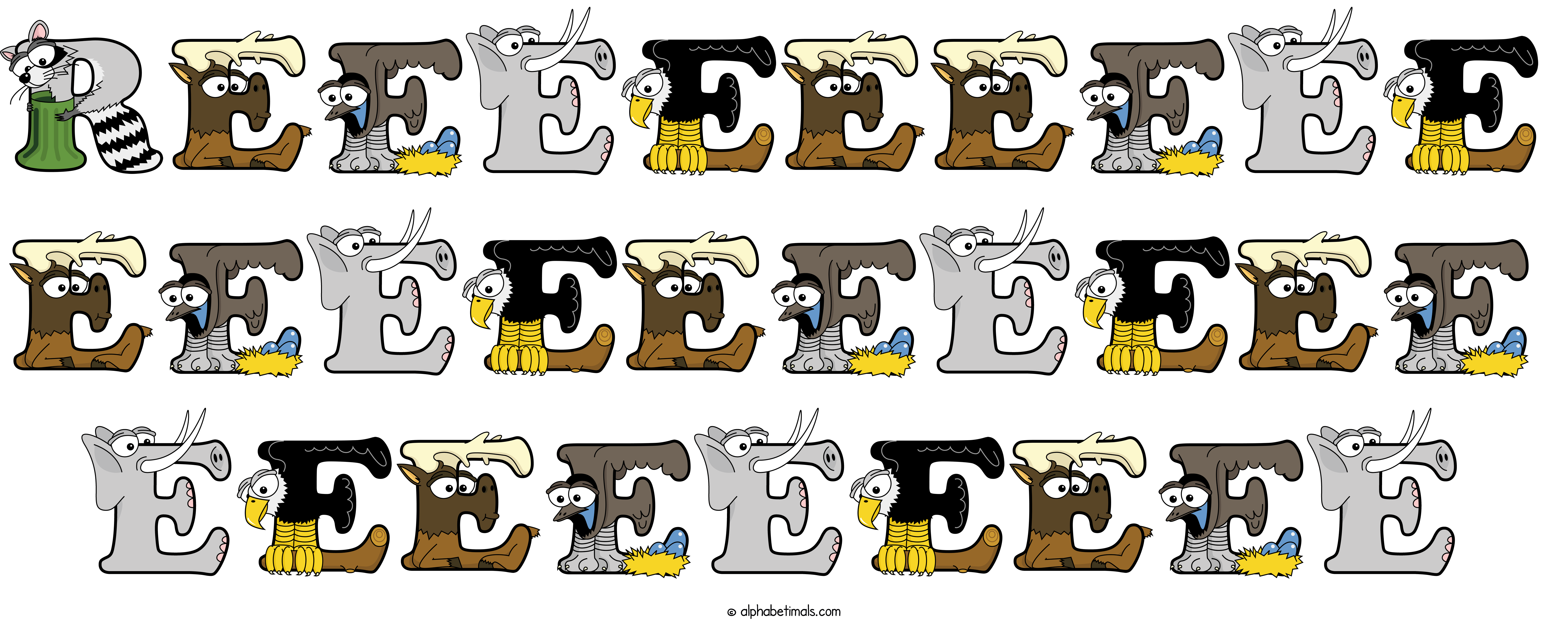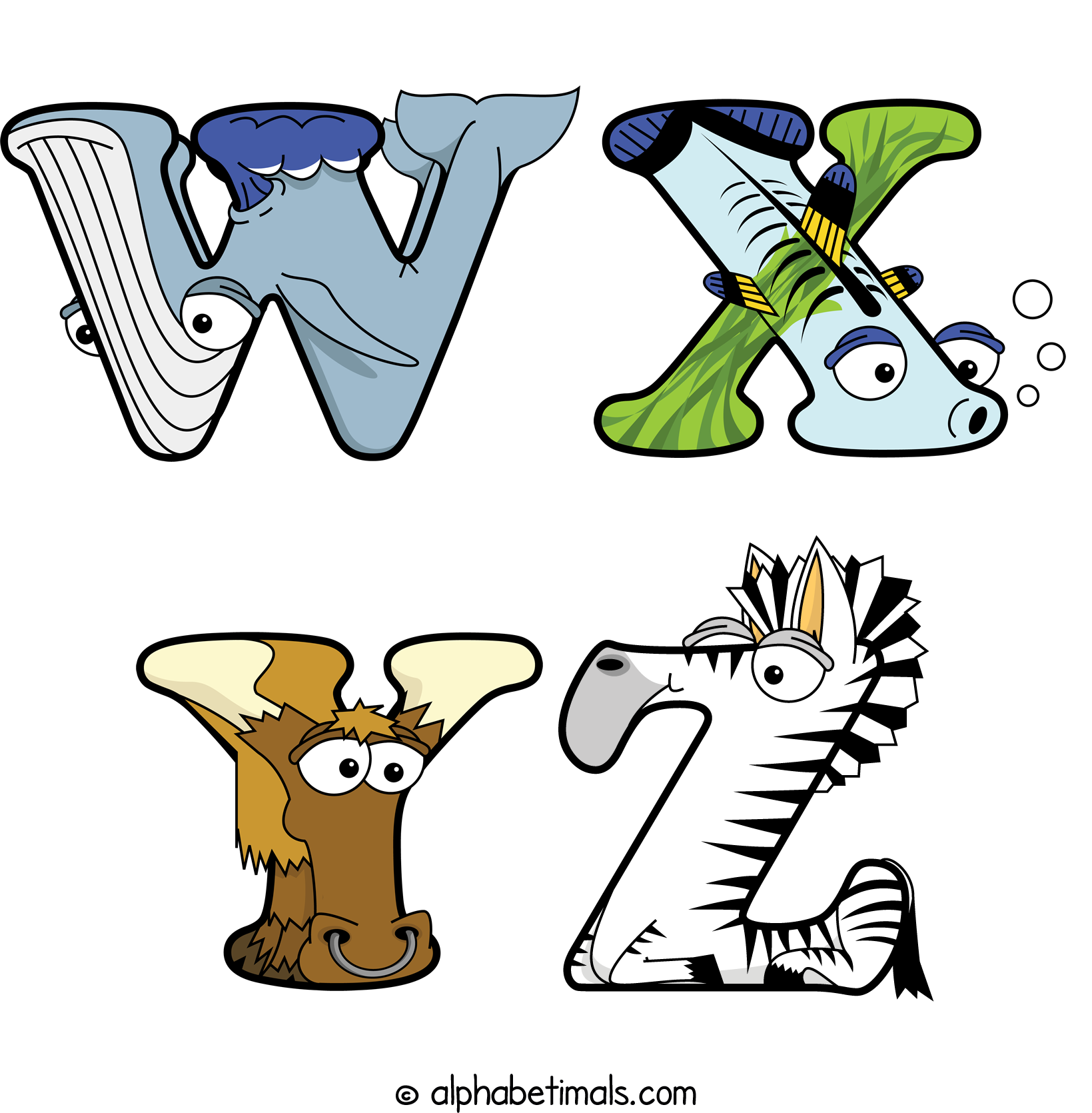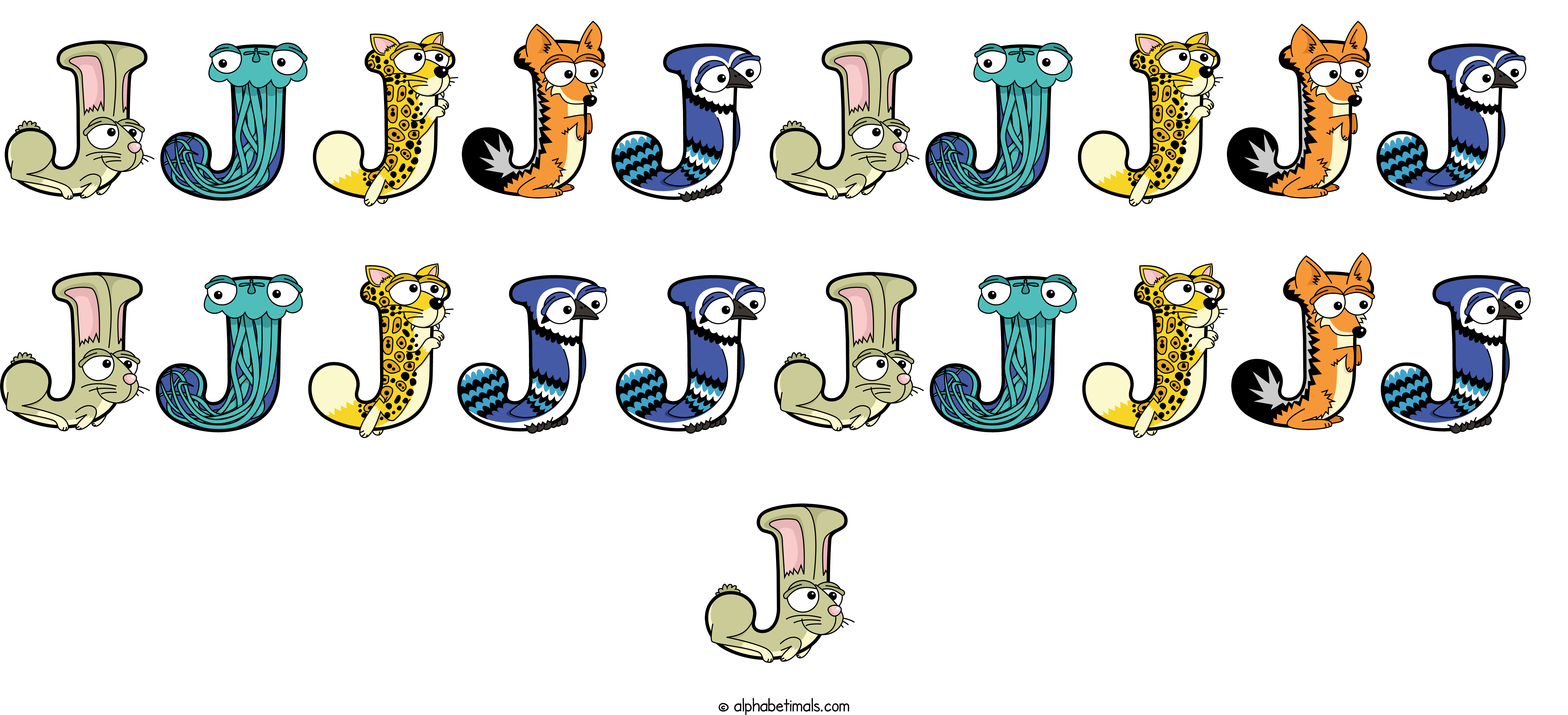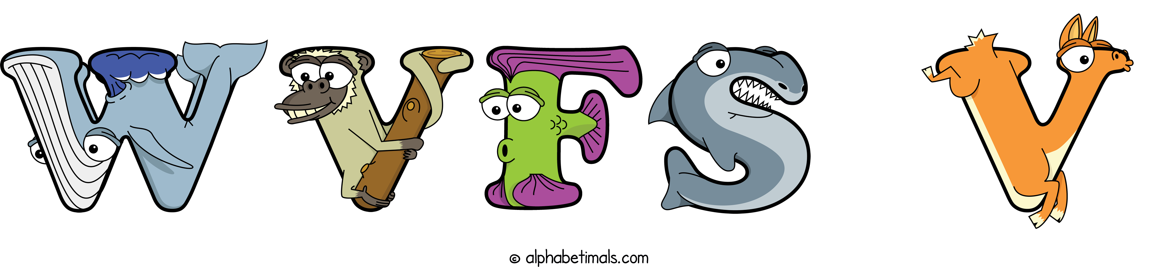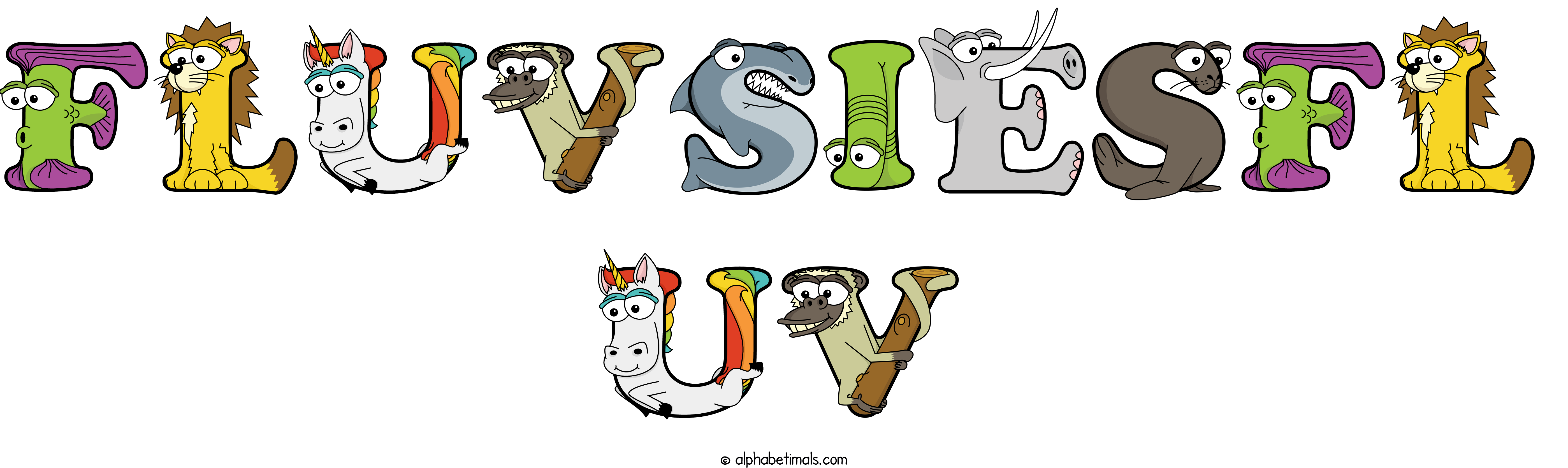Kids have more fun and learn the ABC’s easier with Alphabetimals, cute cartoon animals shaped like the letters of the alphabet.