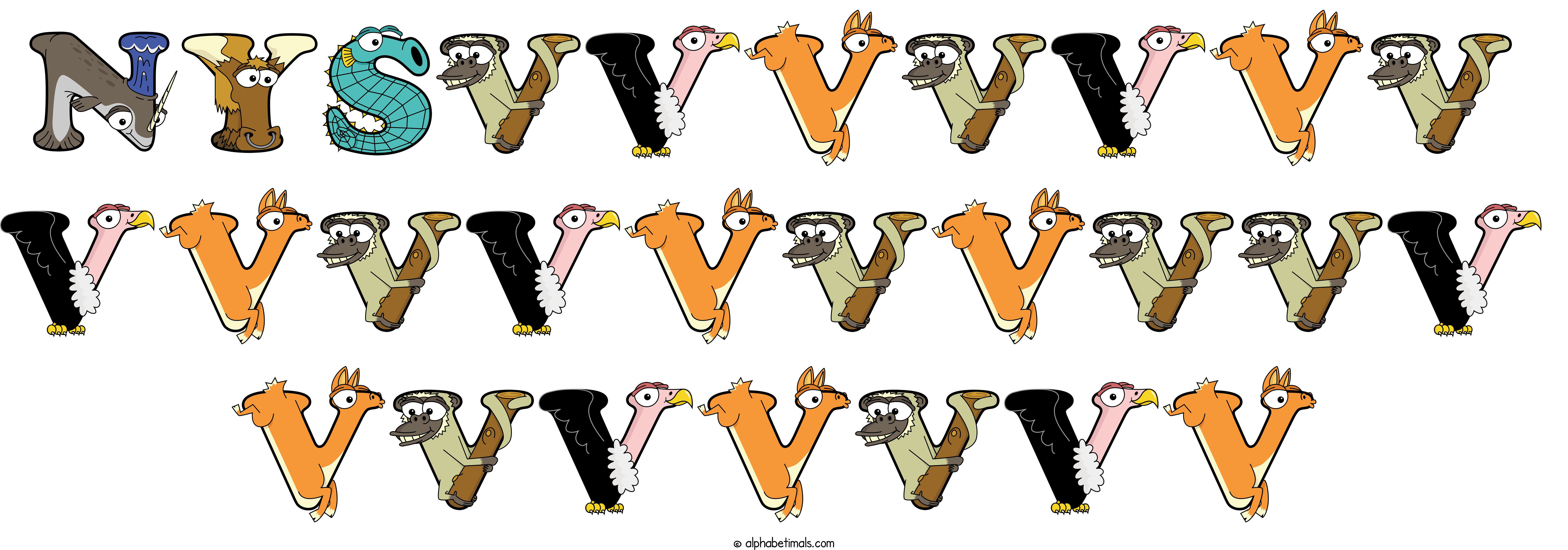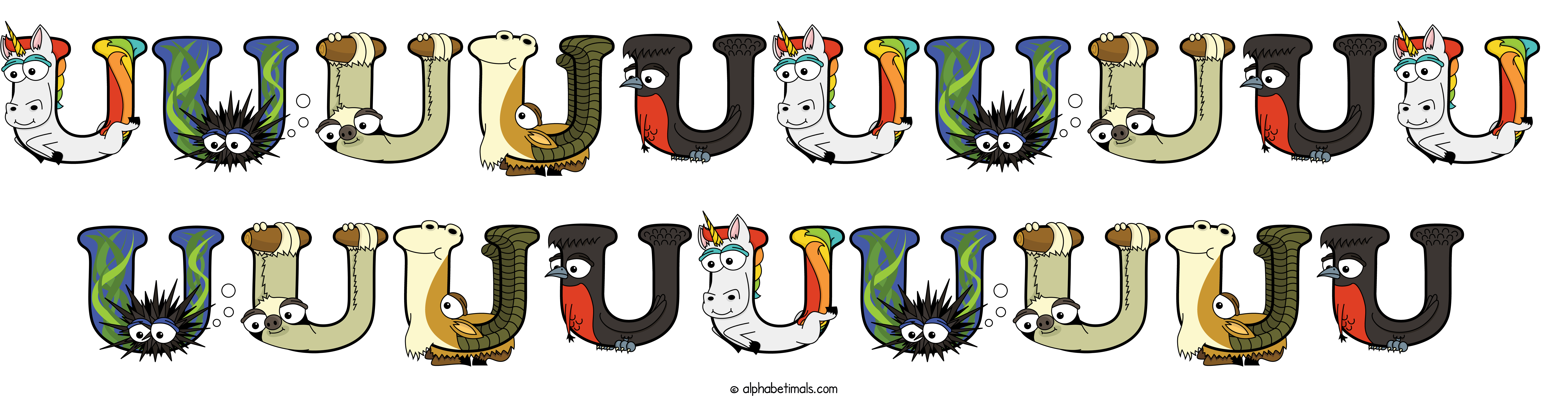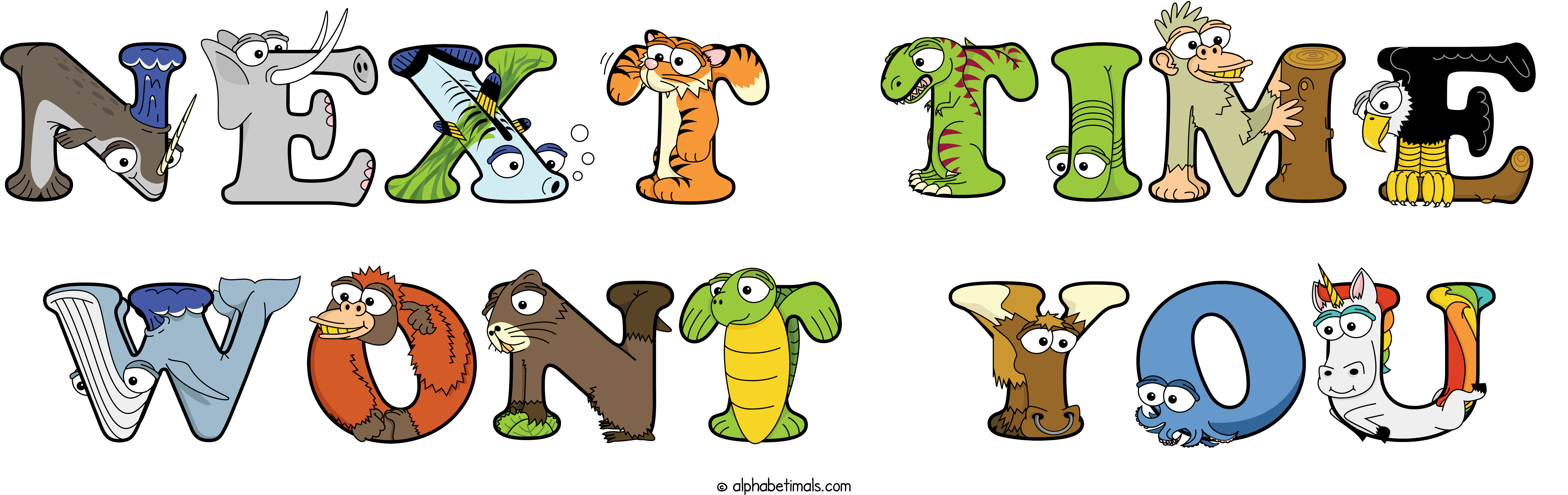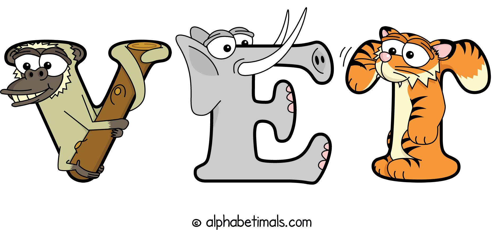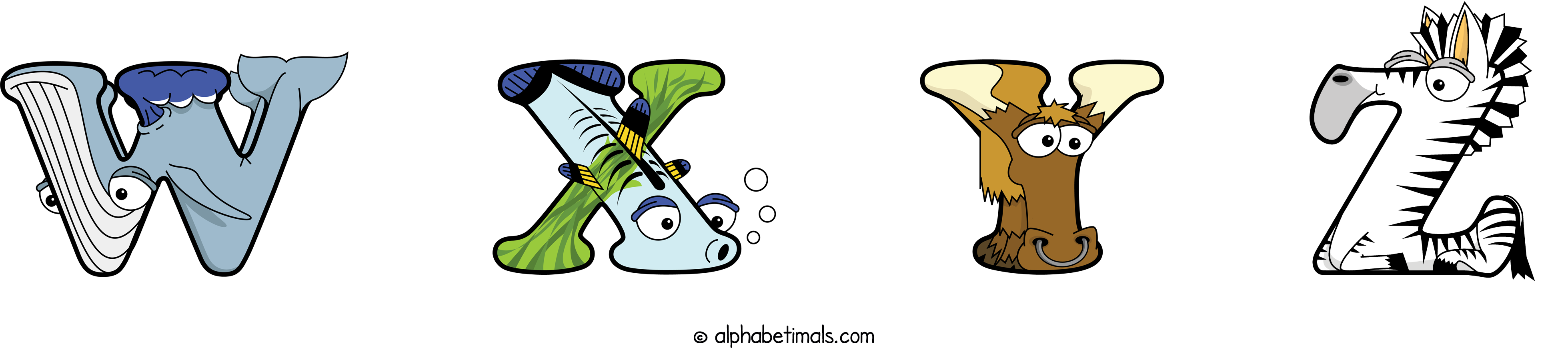 Kids have more fun and learn the ABC’s easier with Alphabetimals, cute cartoon animals shaped like the letters of the alphabet.
