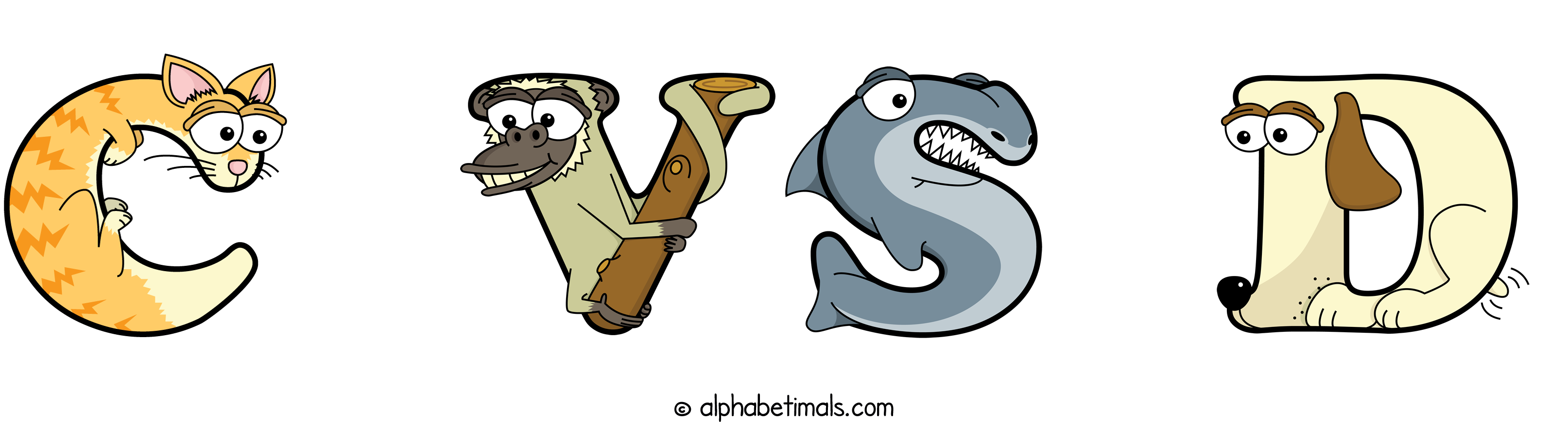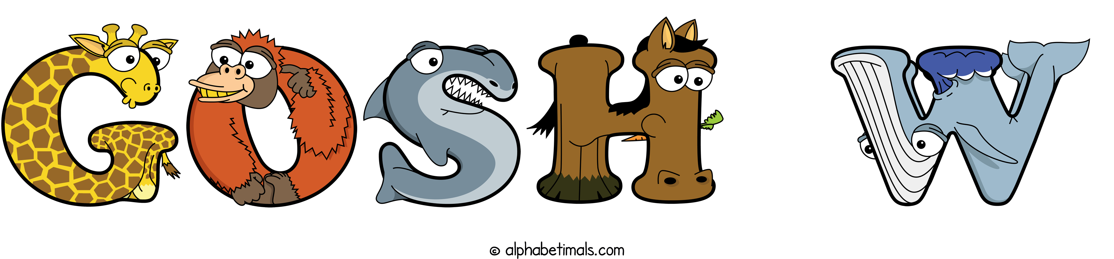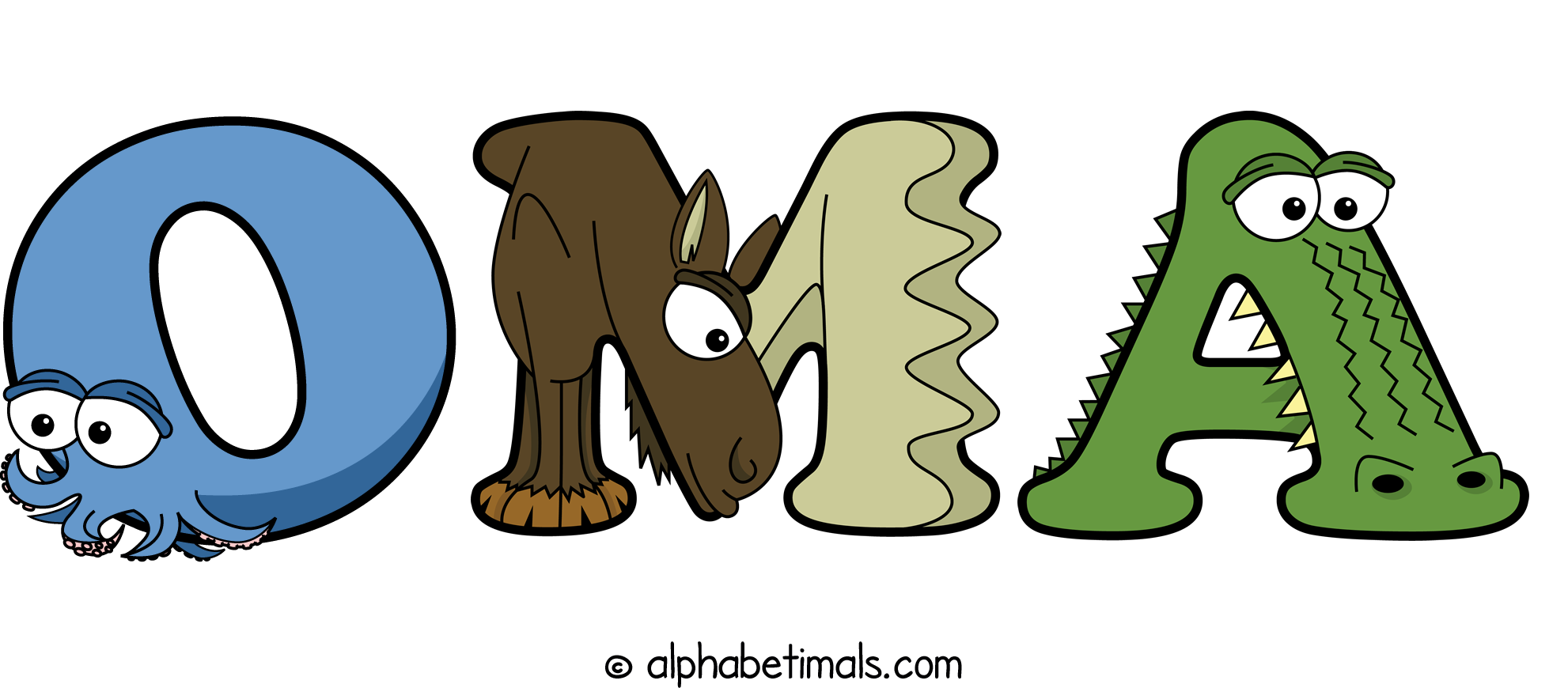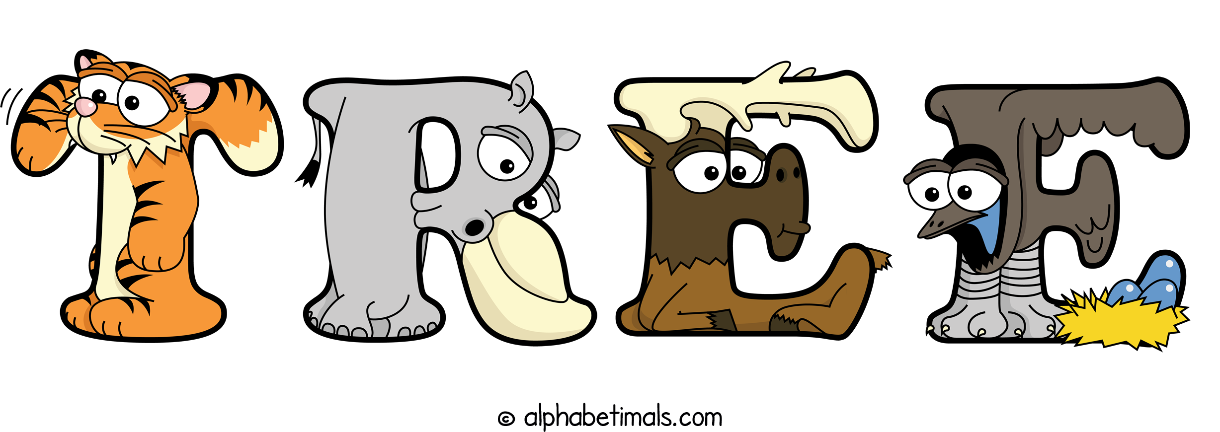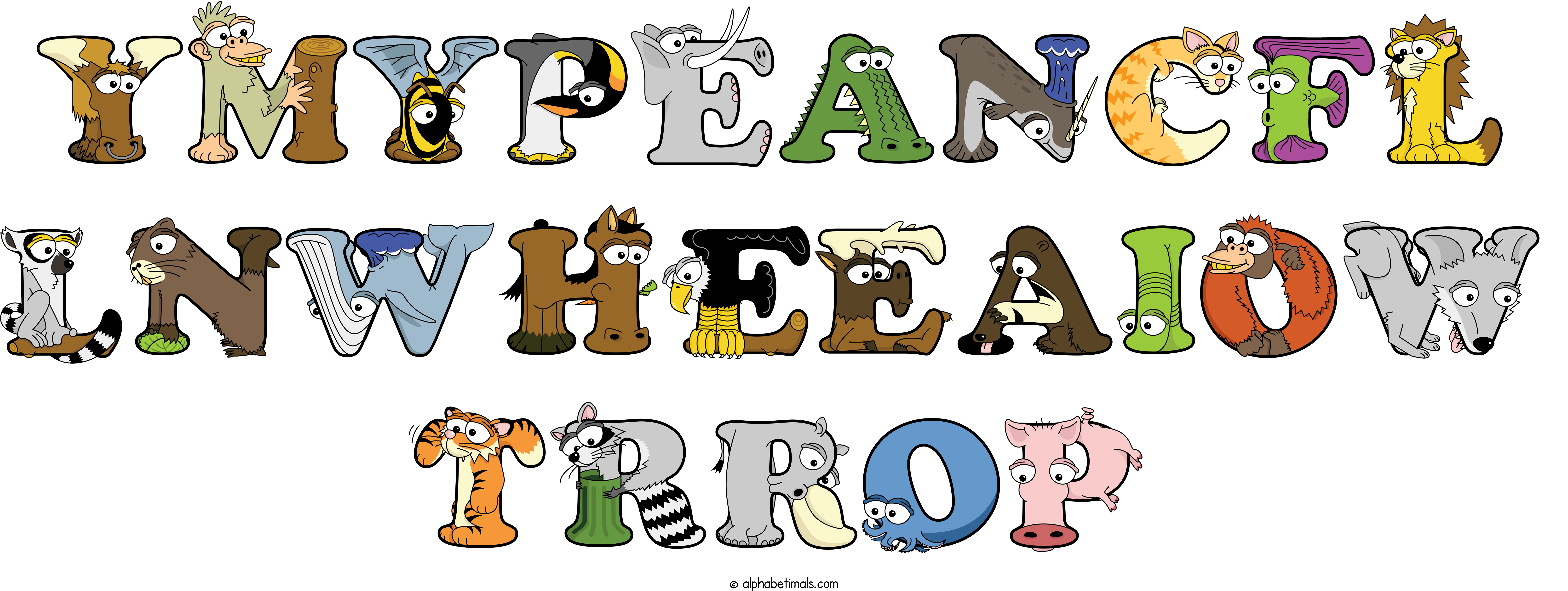 Kids have more fun and learn the ABC’s easier with Alphabetimals, cute cartoon animals shaped like the letters of the alphabet.