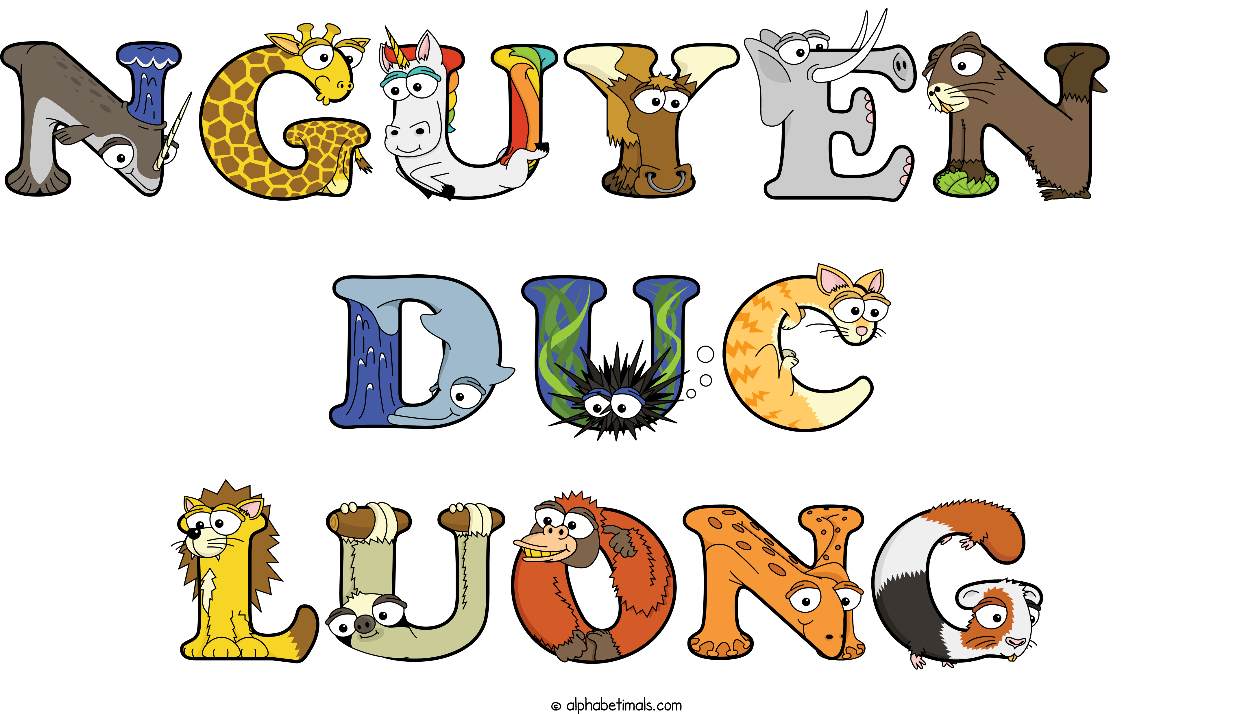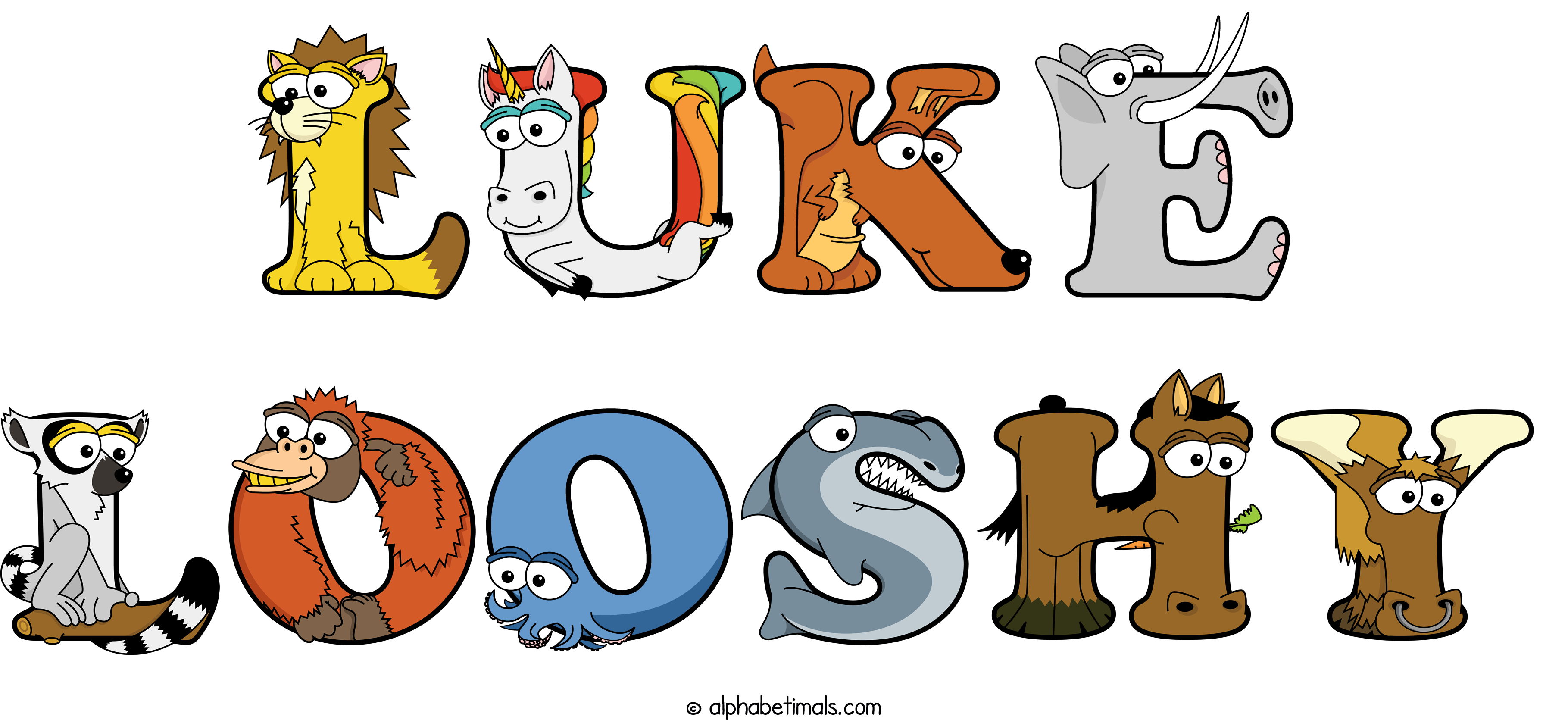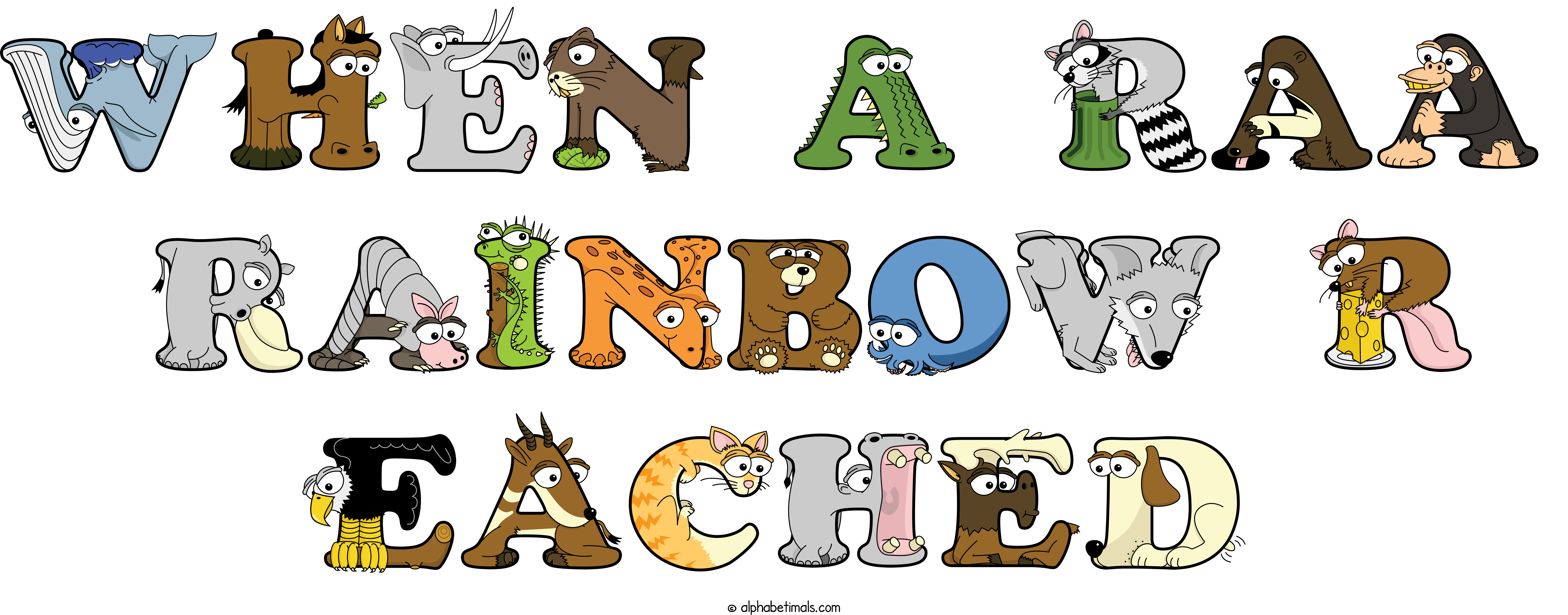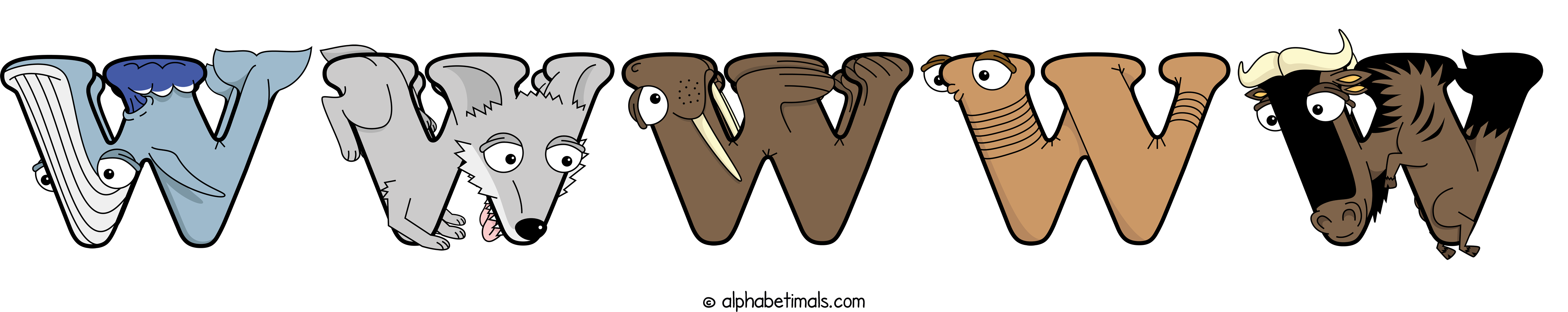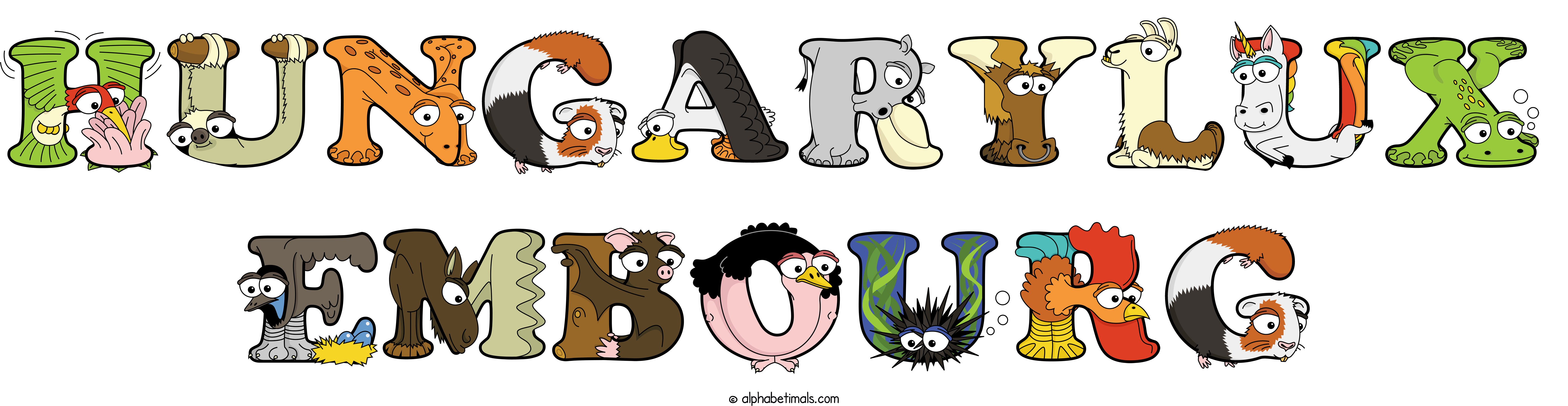 Kids have more fun and learn the ABC’s easier with Alphabetimals, cute cartoon animals shaped like the letters of the alphabet.